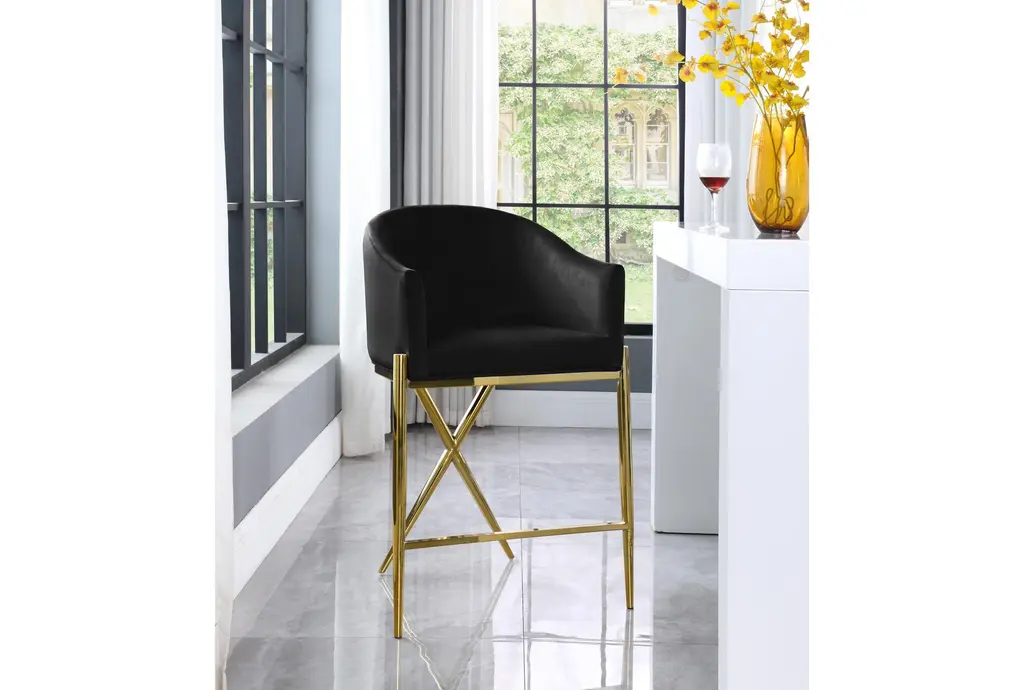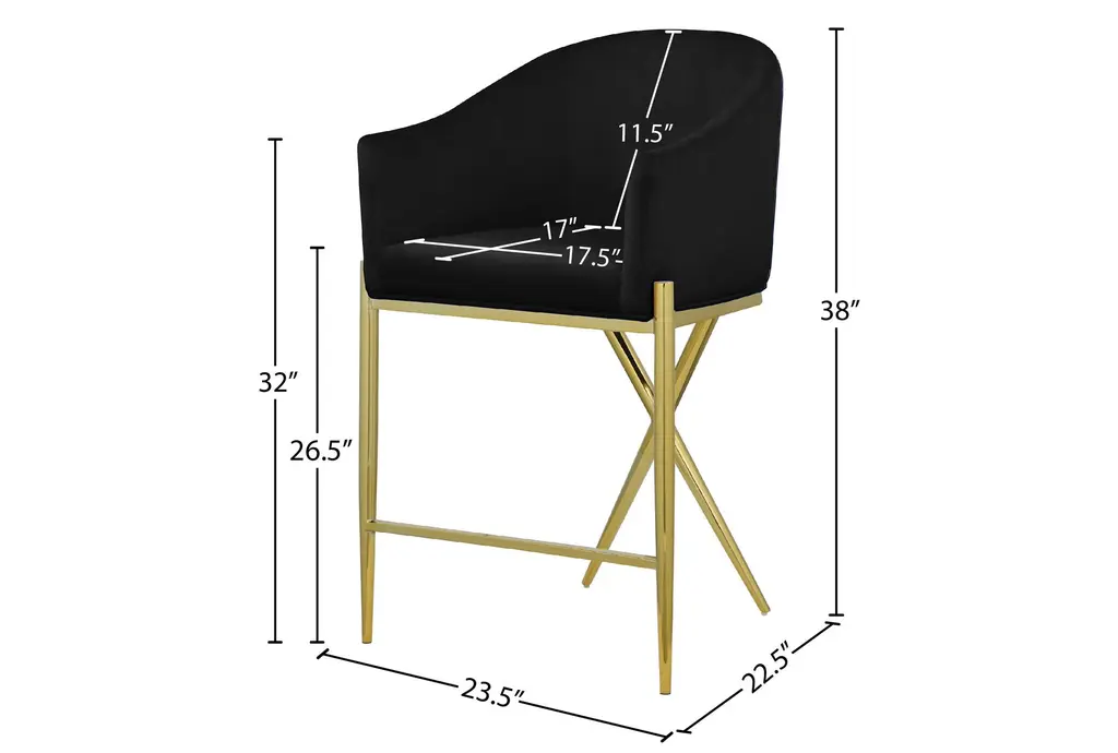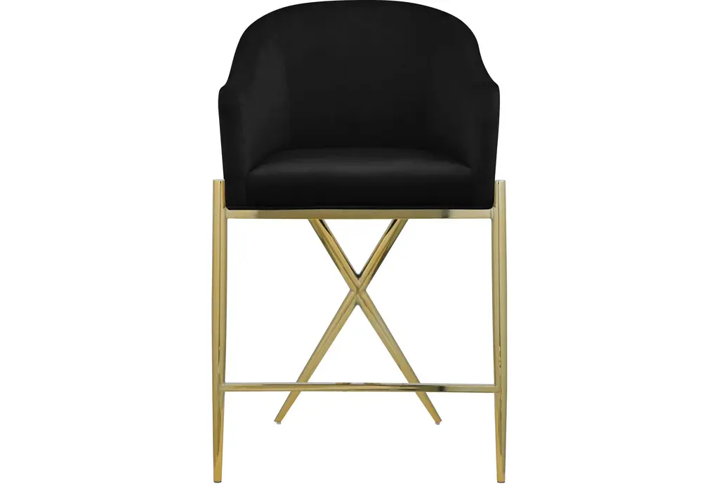 Xavier Black Velvet Upholstered Counter Height Stool With Gold Finish