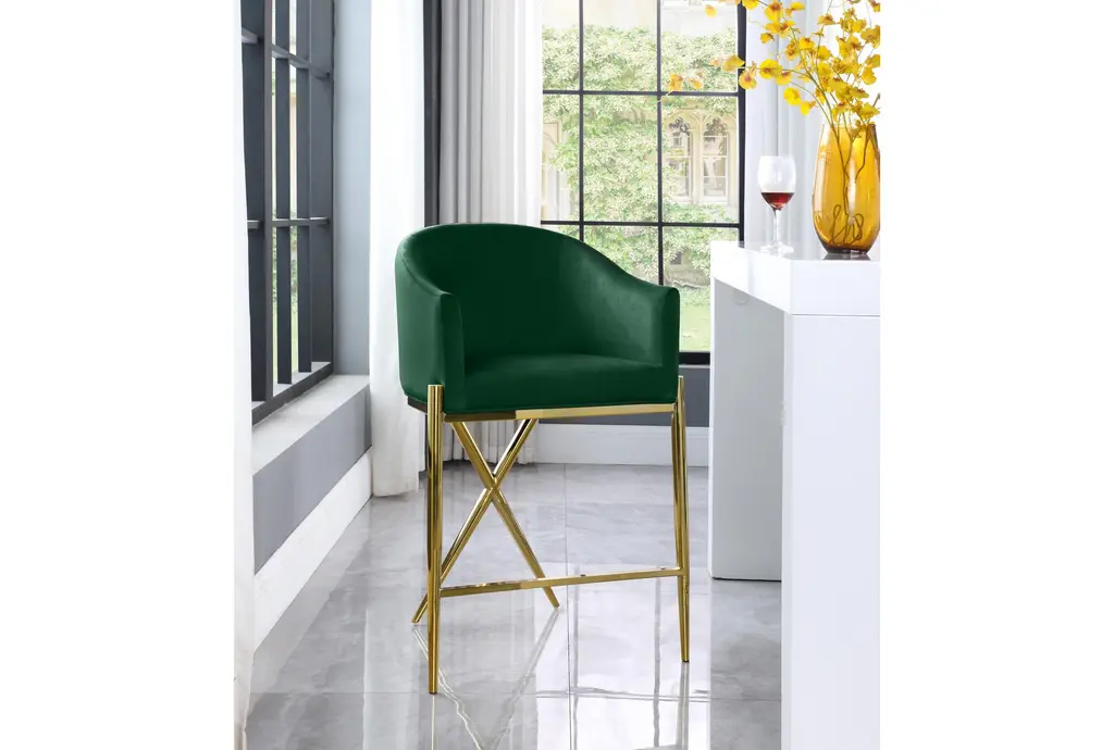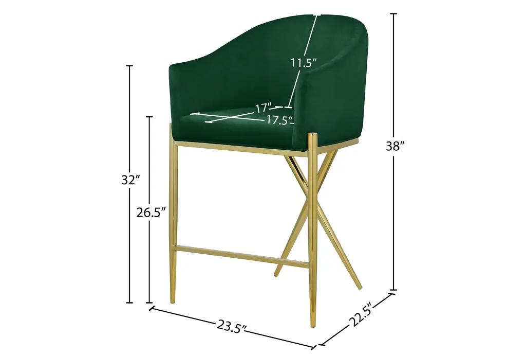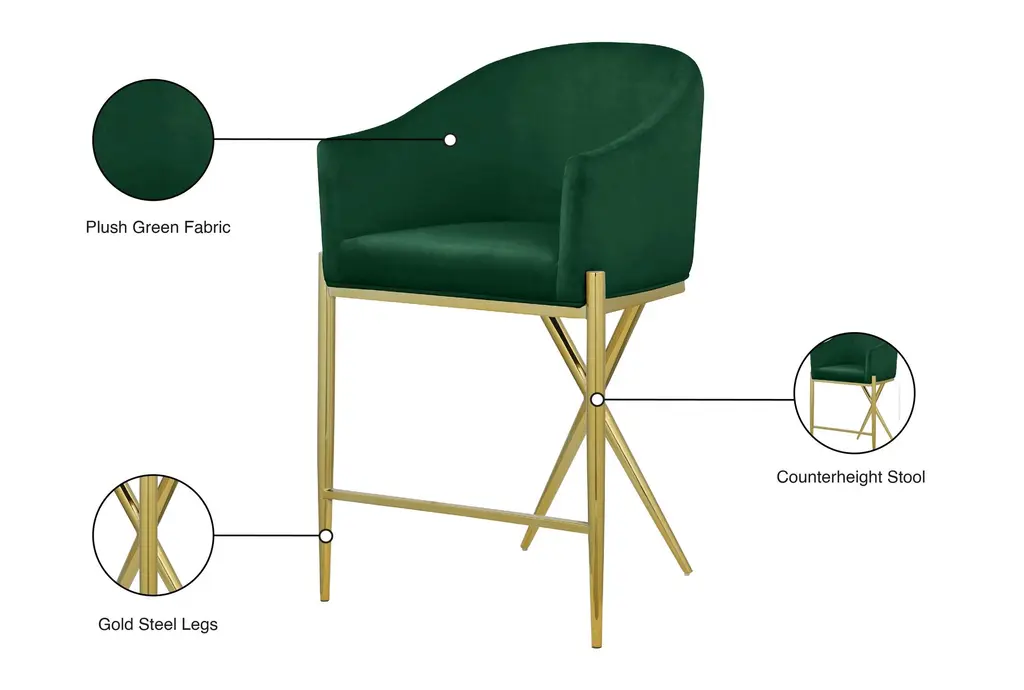 Xavier Green Velvet Upholstered Counter Height Stool With Gold Finish
