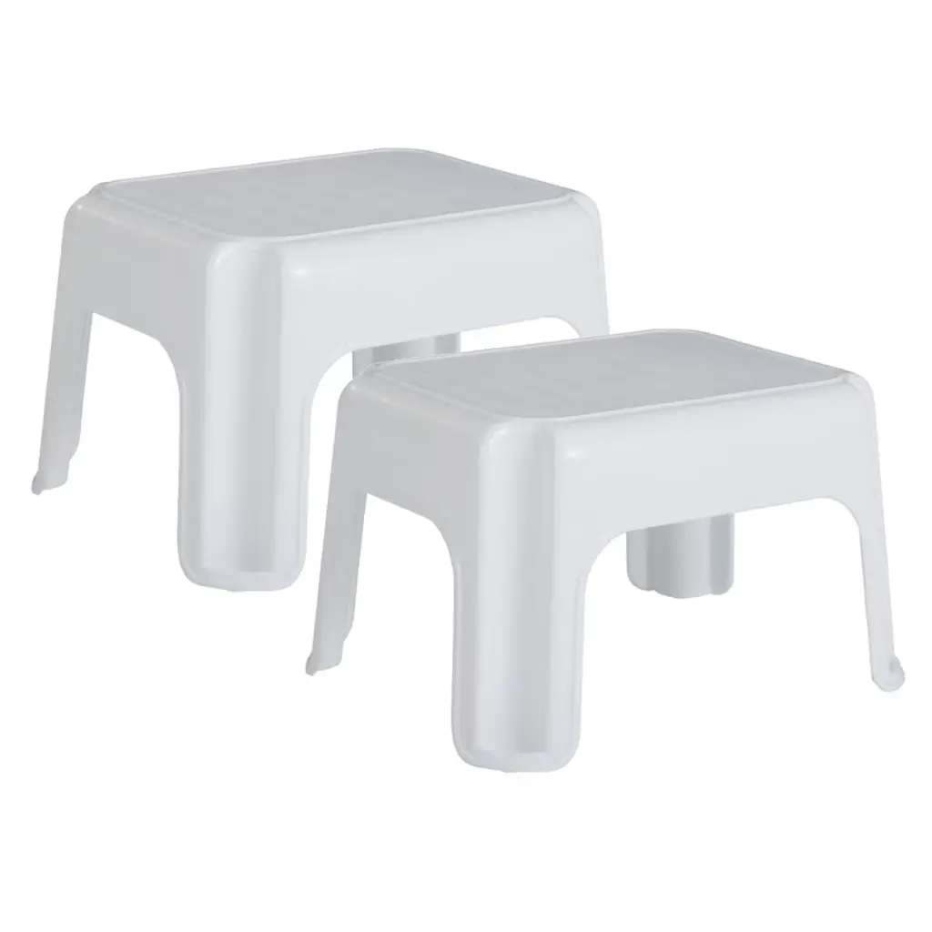 REACH THE TOP AND BEYOND Gain Extra Height for Reaching Things This practical plastic step stool is an ideal selection for families with kids and big furniture. The thick sturdy construction design and non-slip surface qualities makes this stool a great platform to reach the top shelves in the kitchen, closets, and garage as well as for kids to reach the bathroom sink. It is a no brainer when you need to get to those hard-to-reach areas. Sturdy Platform This step stool is a one-piece platform with a grip-dot texture surface that gives you a piece of mind when you or your child use it. Made of thick plastic, this stool is sturdy, durable, yet lightweight and portable to carry around the house. Attractive and Functional The bright color coated finish blends aesthetically with your current home decor settings. With a capacity to withstand up to 200 pounds, this stepping stool is safe for adults to stand on it and useful for kids to gain independence when using the bathroom sink. It is lightweight and portable to carry around. Available Colors - Black - Gray MEASUREMENTS - Height 10.75 in. Upper Diameter 11 in. Lower Diameter 7.5 in. Capacity 11.5 Quart (2.8 Gallons)