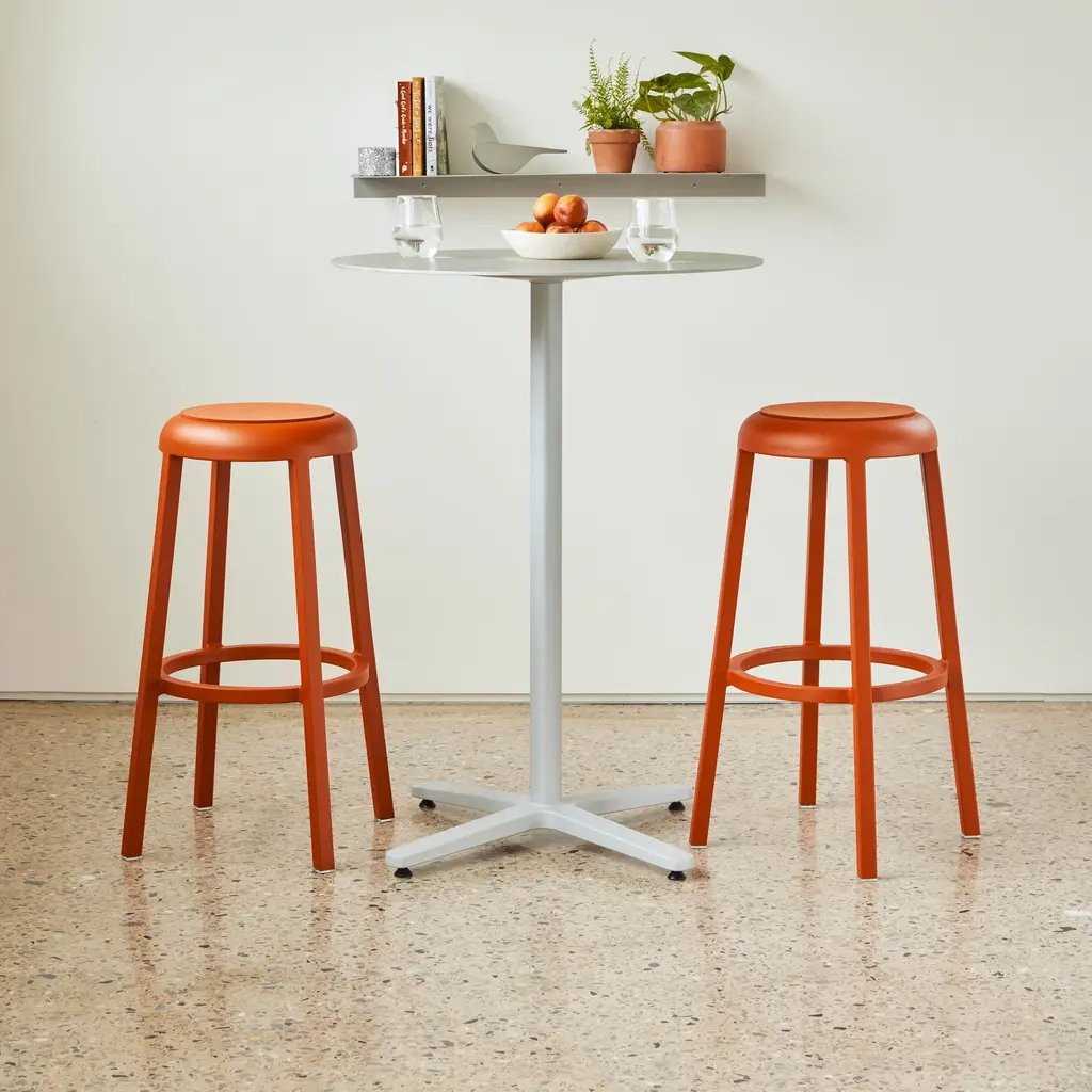 A versatile and timeless design, ready to be used anywhere, the ZA Stool from Emeco brings stylish simplicity to your well-appointed home. Crafted from recycled aluminum right here in the United States, this stool showcases a rounded seat and four rectangular feet for ample balance and a sturdy design. Station along your kitchen island counter for casual seating with the family, or flank either side of a sofa with the low version for a striking side table that acts as additional seating when unexpected guests arrive. Highlights