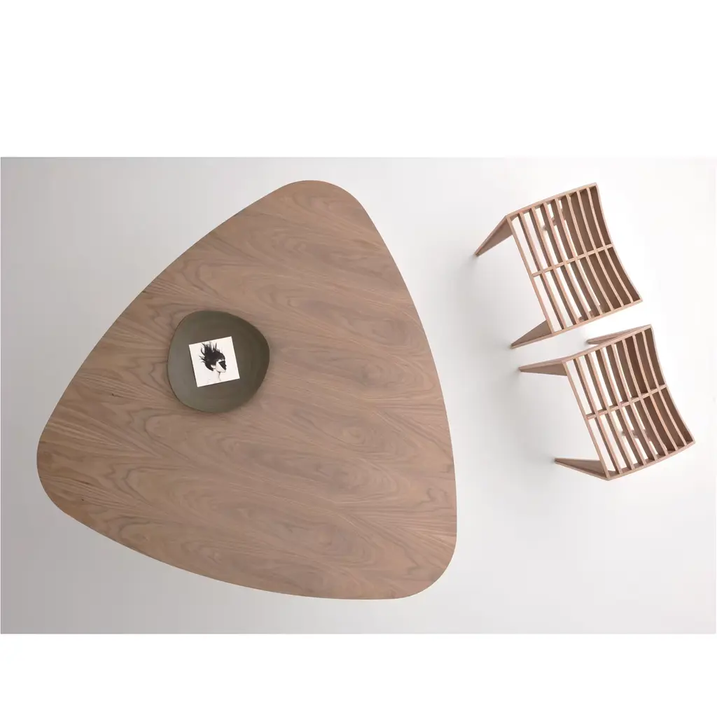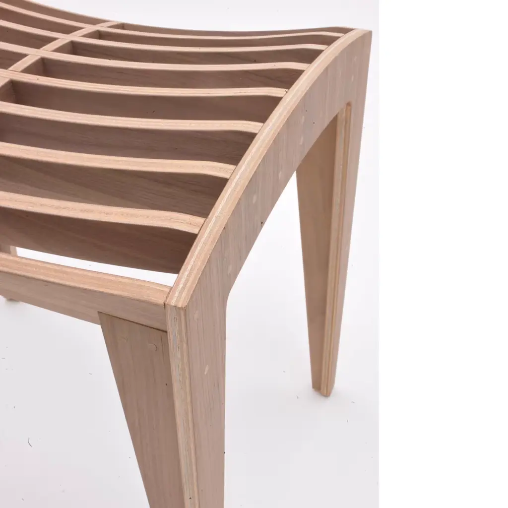 Franco Poli designed this striking piece for Morelato and it is the harmonious result of the mix between design and ideal choice of material. The stool is made of plywood with walnut veneer, assembled with wooden pins only. The seat is made of lists of wood gathered by single joints and pins and features a curved surface that is also light. Ideal for any room, this piece will also be a stylish addition to a workplace and can be used alone or paired with others to create interesting patterns.