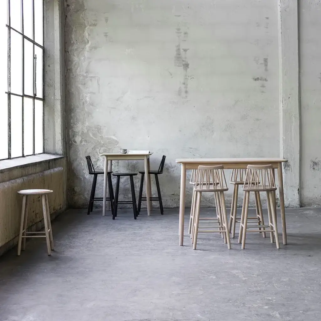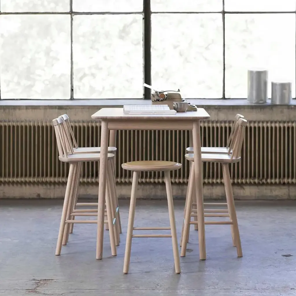 Zig Zag is a stool in solid oak, ash or birch, with footrest. It is available in the version without backrest, with straight backrest or with curved backrest and armrests. It is available in different heights and in the junior version. It can be equipped with a pillow.