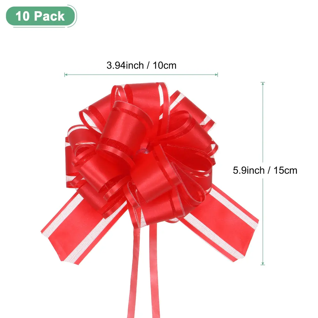 PRODUCT APPLICATION:1. Wrapping bows for presents is suitable for various occasions such as birthdays, weddings, holidays, parties, home decor, celebrations, walls, benches, and more.2. Great for enhancing the overall gifting experience during festive holidays like Christmas, Halloween, Thanksgiving, Teacher's Day, and Easter.PRODUCT DETAILS & INCLUDE:√ Material: Plastic√ Color: Red√ Expand Size:15cm x 10cm / 5.9" x 3.94"√ Package Inclue:10pcs x bows for flower bouquetsPRODUCT ADVANTAGES1. The wrapping bows for presents are crafted from PP plastic, which is waterproof, tear-resistant, and deformation-proof, ensuring long-lasting durability.2. Smooth surface with a glossy appearance under lights, perfect for decorating floral arrangements, gift wrapping, gift baskets, DIY crafts, ribbon art, scrapbooking, adding visual appeal and charm.INSTALLATIONQuick and easy installation process adds a luxurious feel to your gifts effortlessly - simply pull apart the bow to reveal the pattern. Knotting at the top of the bow ensures secure fitting.