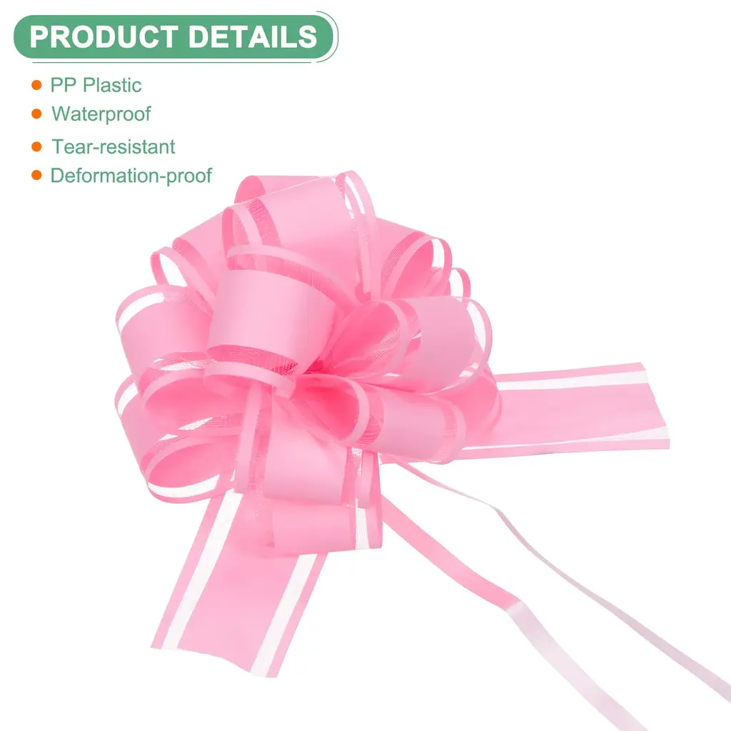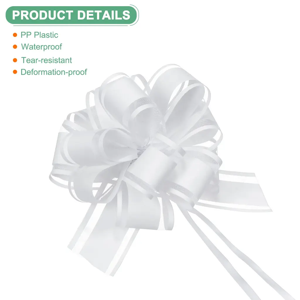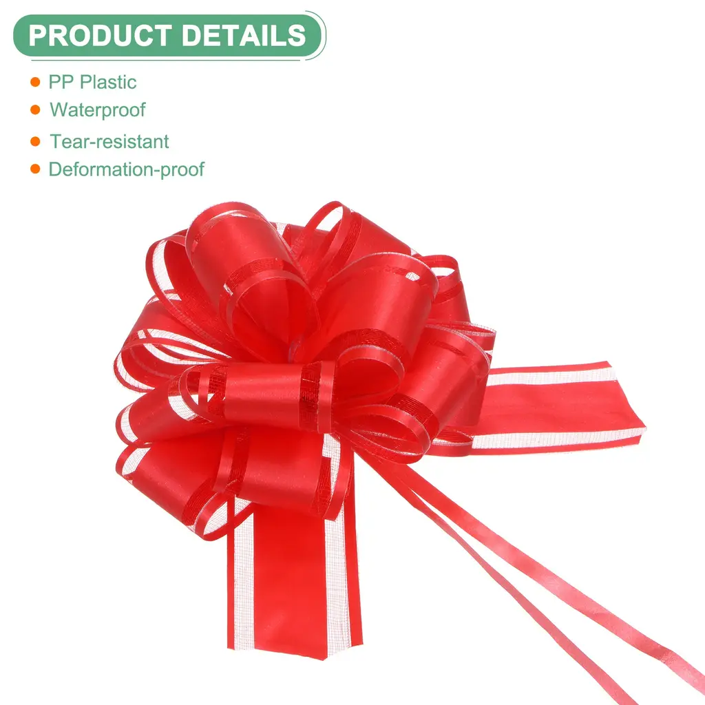 PRODUCT APPLICATION:1. Wrapping bows for presents is suitable for various occasions such as birthdays, weddings, holidays, parties, home decor, celebrations, walls, benches, and more.2. Great for enhancing the overall gifting experience during festive holidays like Christmas, Halloween, Thanksgiving, Teacher's Day, and Easter.PRODUCT DETAILS & INCLUDE:√ Material: Plastic√ Color: Red√ Expand Size:15cm x 10cm / 5.9" x 3.94"√ Package Inclue:10pcs x bows for flower bouquetsPRODUCT ADVANTAGES1. The wrapping bows for presents are crafted from PP plastic, which is waterproof, tear-resistant, and deformation-proof, ensuring long-lasting durability.2. Smooth surface with a glossy appearance under lights, perfect for decorating floral arrangements, gift wrapping, gift baskets, DIY crafts, ribbon art, scrapbooking, adding visual appeal and charm.INSTALLATIONQuick and easy installation process adds a luxurious feel to your gifts effortlessly - simply pull apart the bow to reveal the pattern. Knotting at the top of the bow ensures secure fitting.