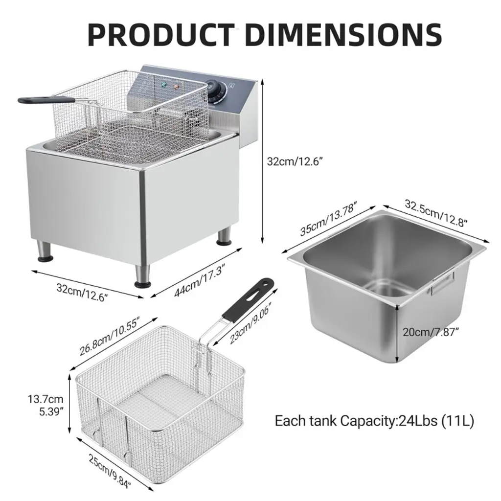 11 Liter Electric Fryer with Basket & Lid 2.0, 11.6QT Deep Fryer for Restaurant Home Use, Adjustable Temperature, with Extra Large Thick Frying Basket and Lid, Stainless Steel, 110V, 1700W