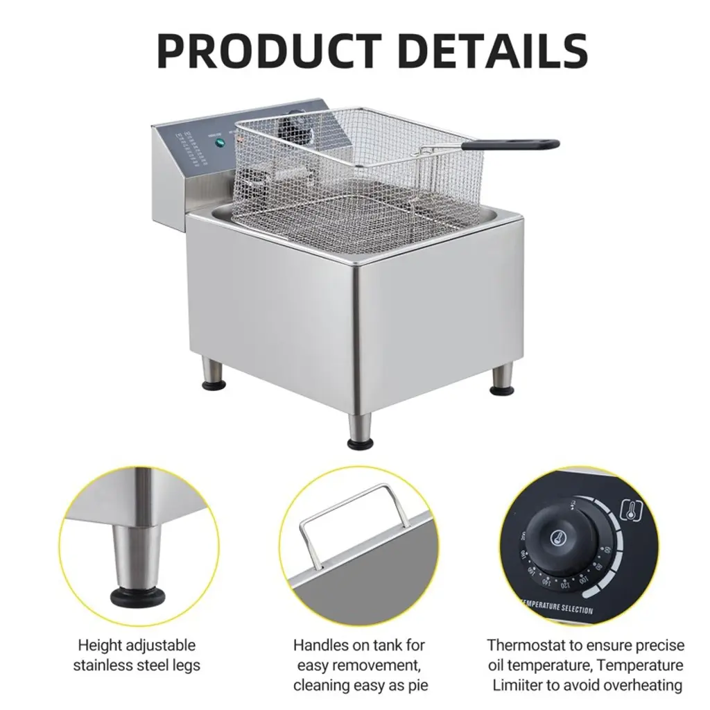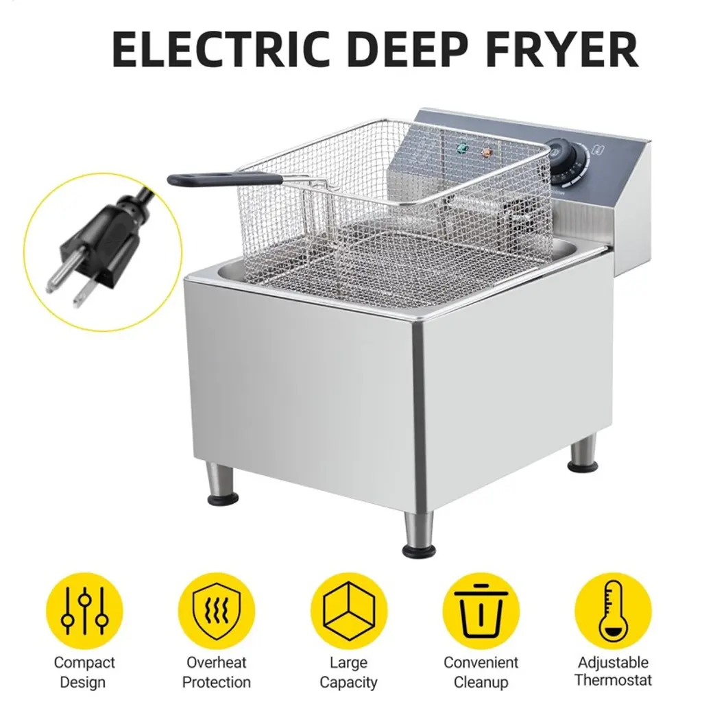 11l Electric Fryer With Basket & Lid 2.0, Deep Fryer For Restaurant Home Use, Adjustable Temperature, Stainless Steel, 110v