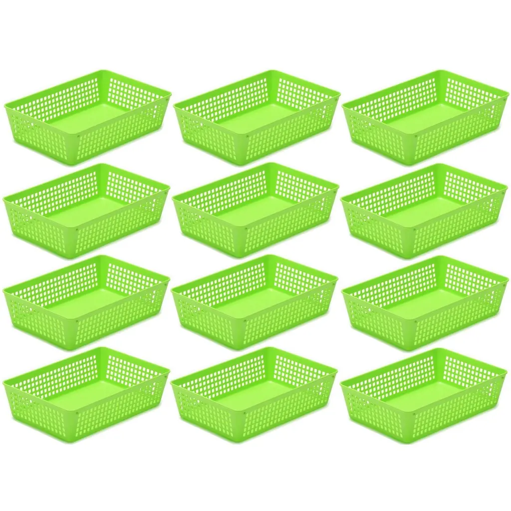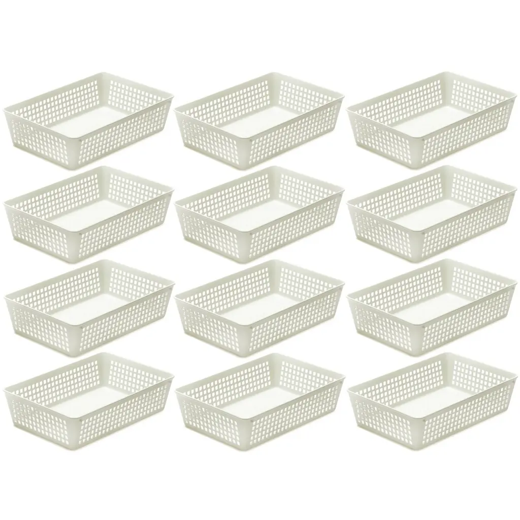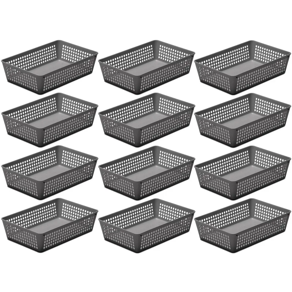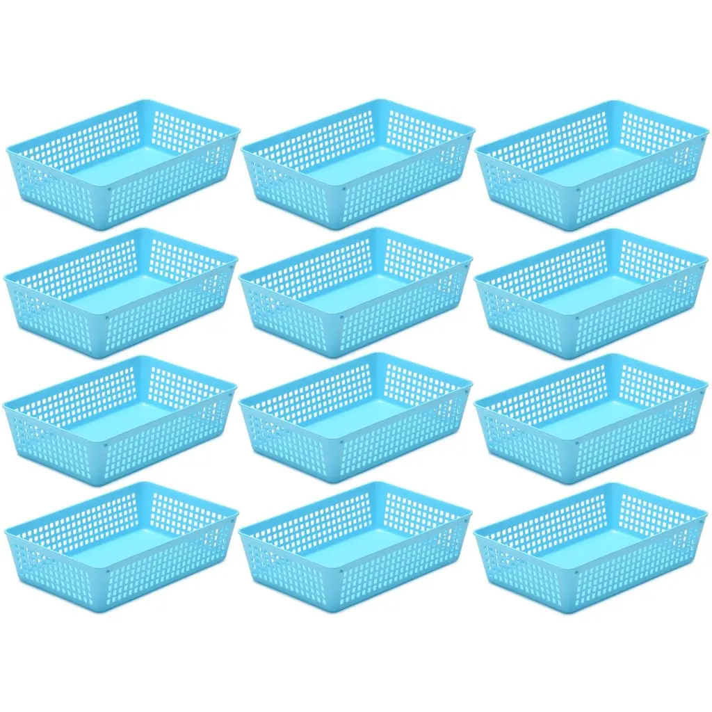 12-Pack Plastic Storage Baskets For Office Drawer, Classroom Desk - Clear