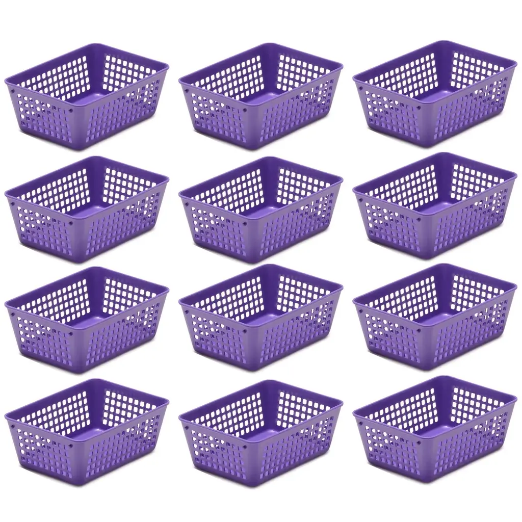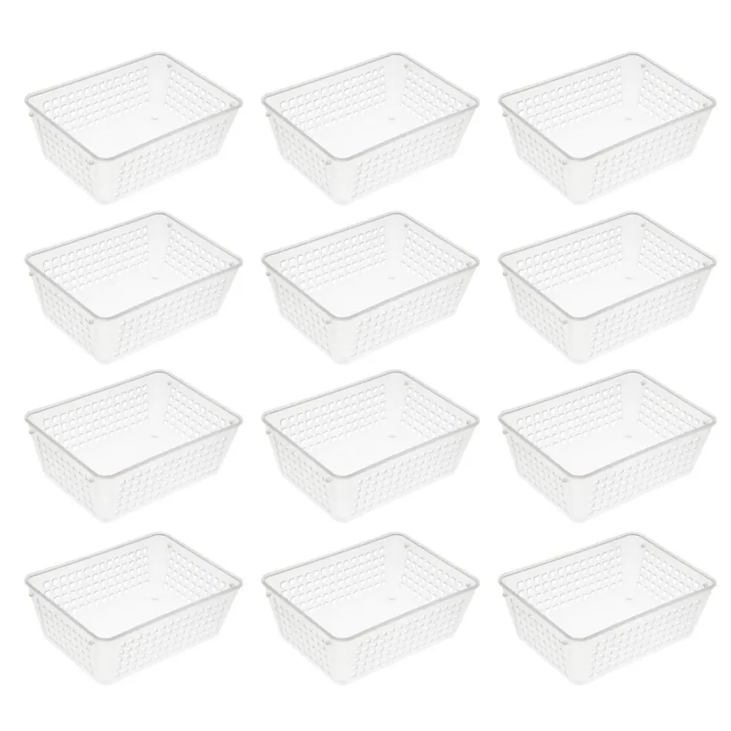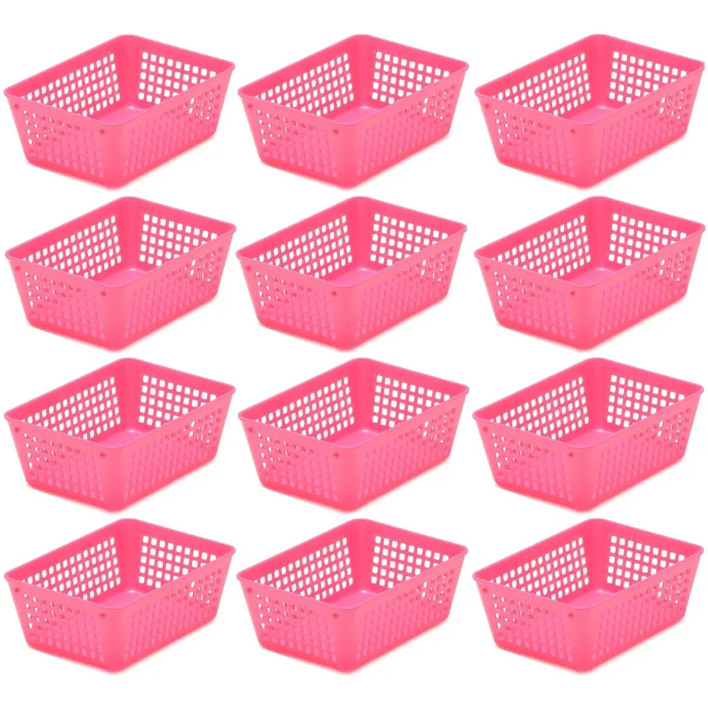 12-Pack Plastic Storage Baskets For Office Drawer, Classroom Desk - Green