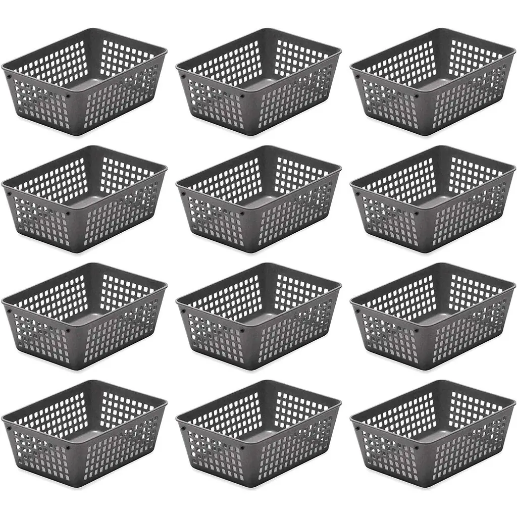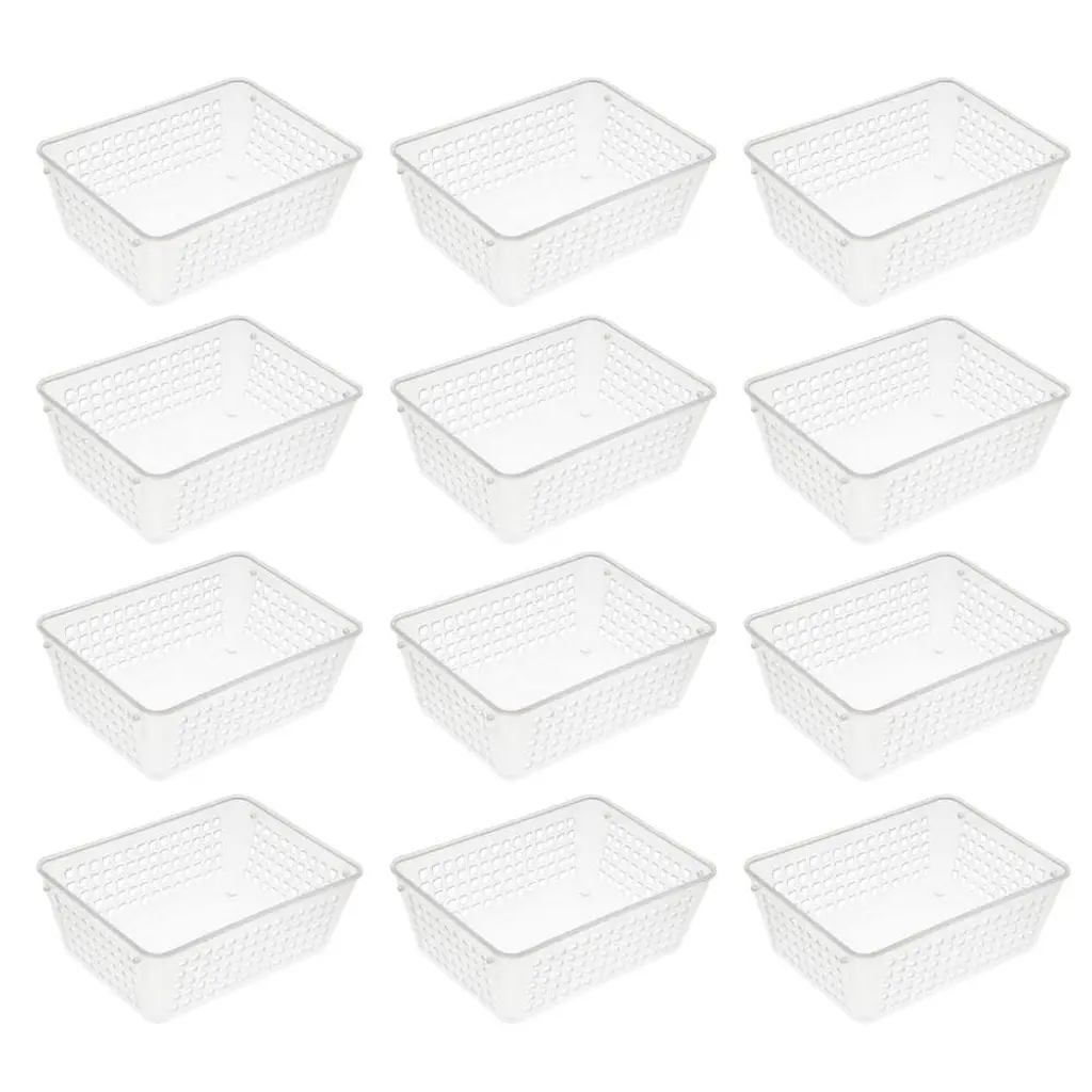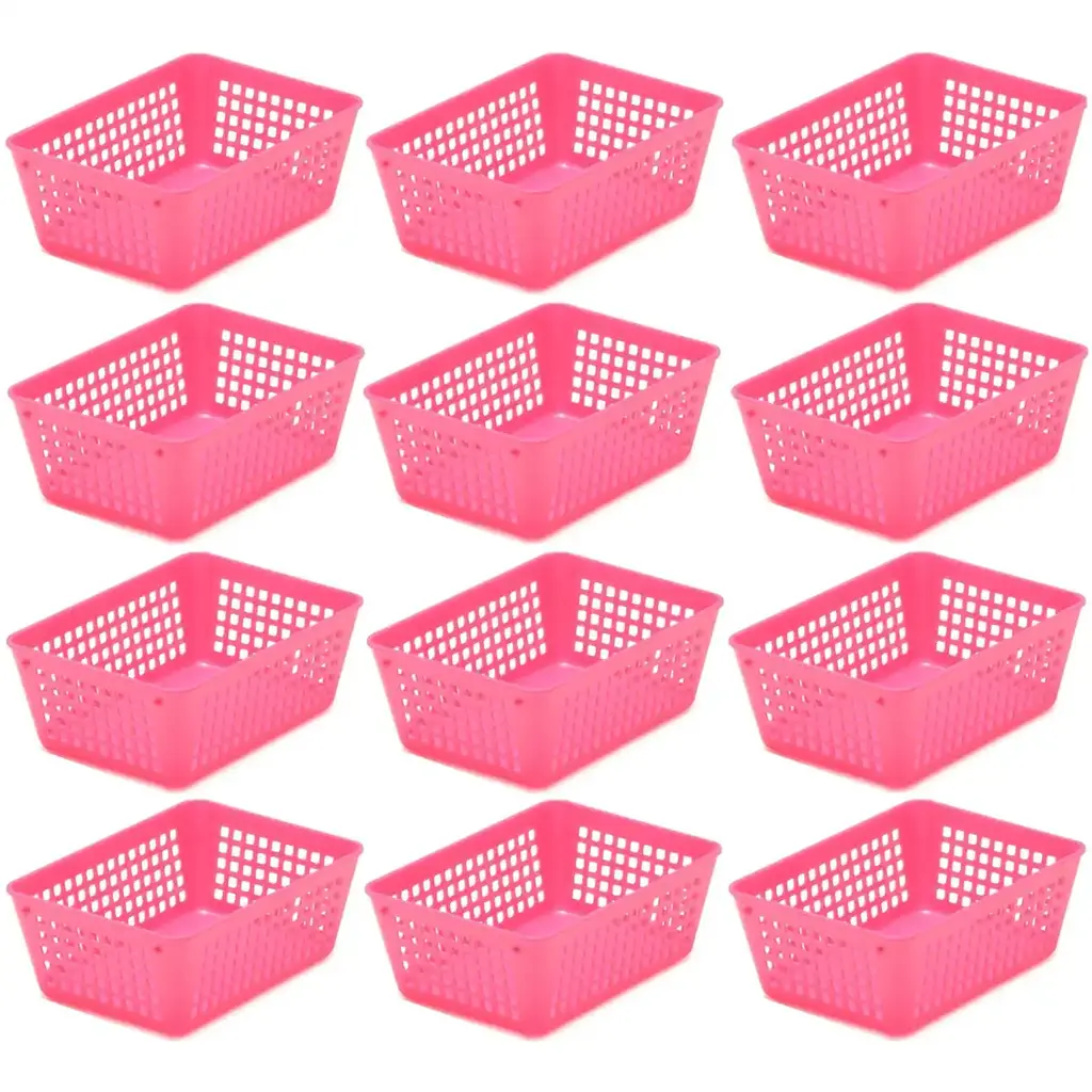 12-Pack Plastic Storage Baskets For Office Drawer, Classroom Desk - Purple
