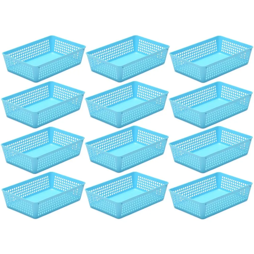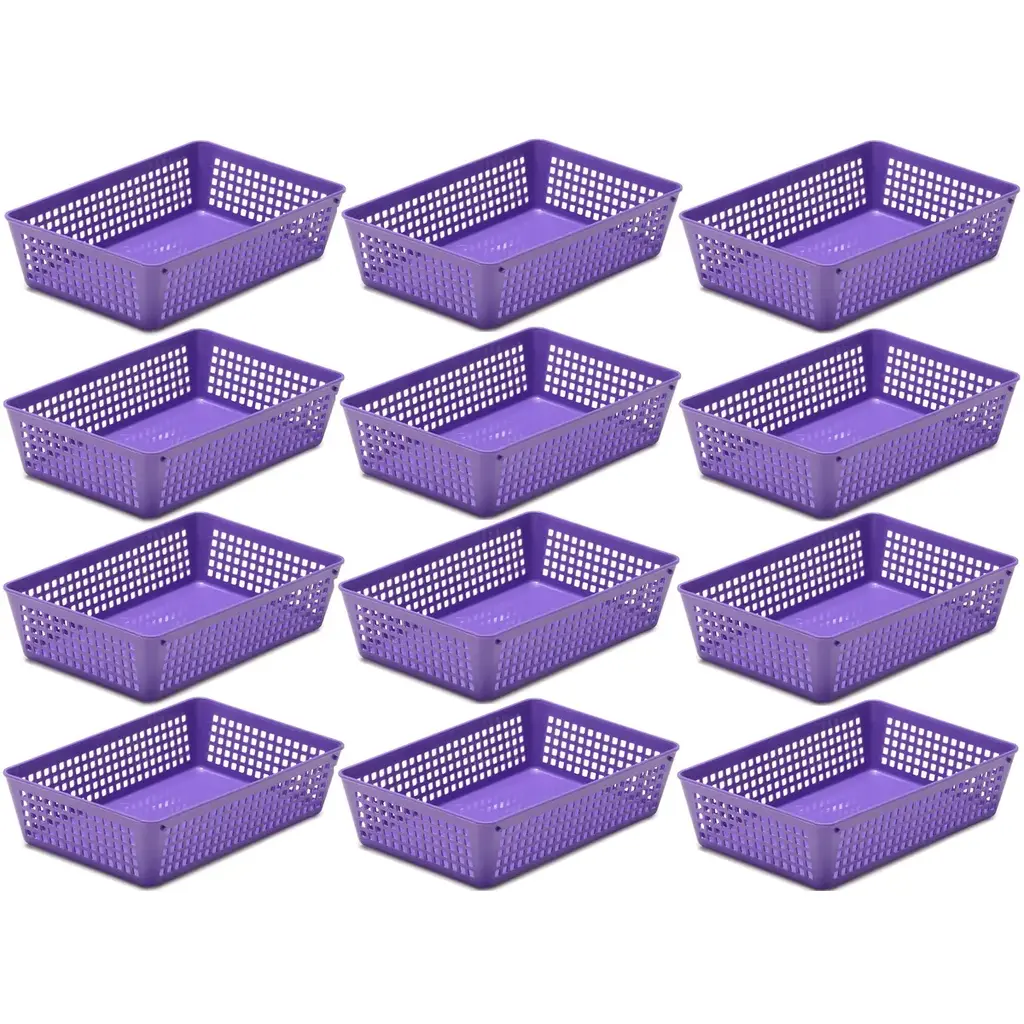 12-Pack Plastic Storage Baskets For Office Drawer, Classroom Desk - Purple