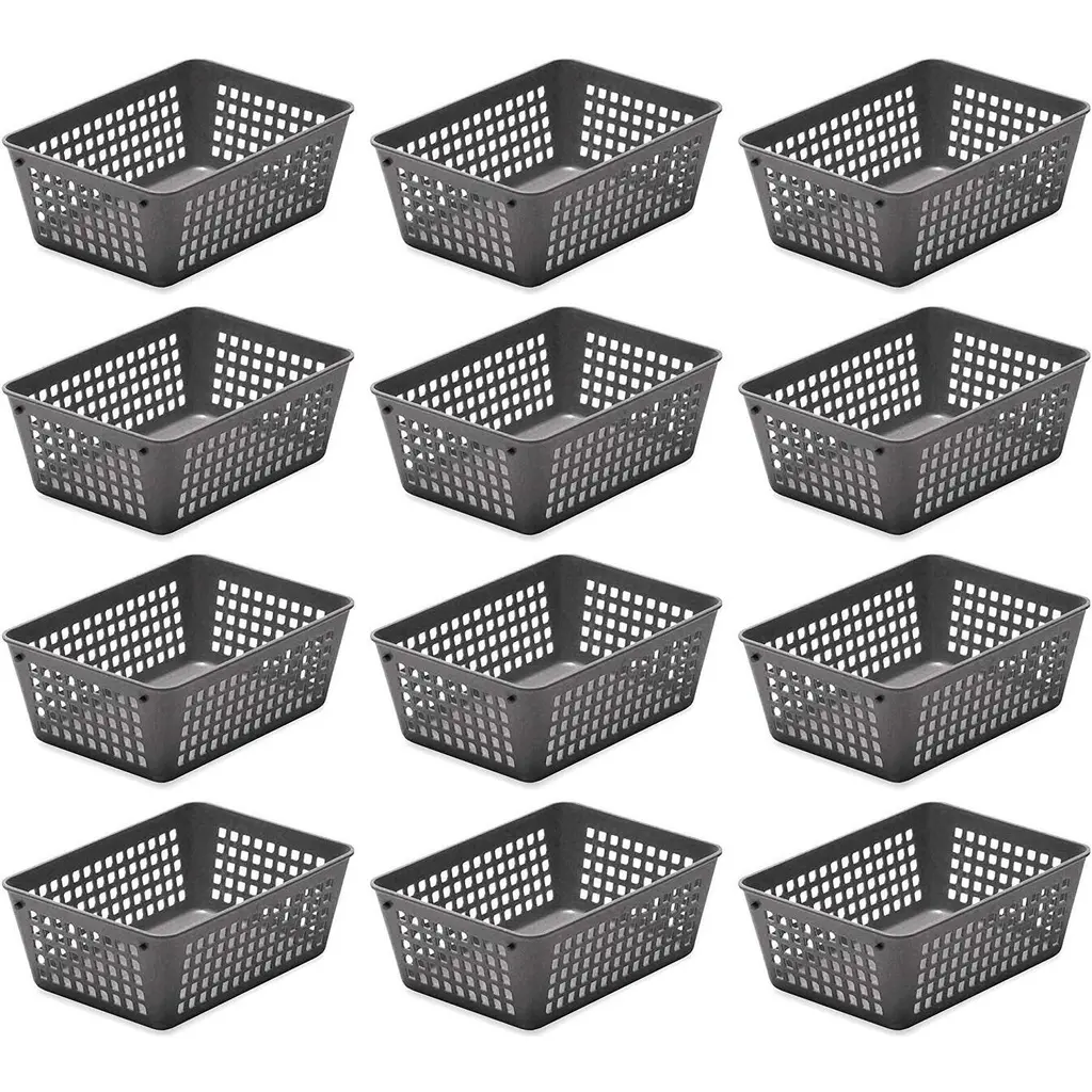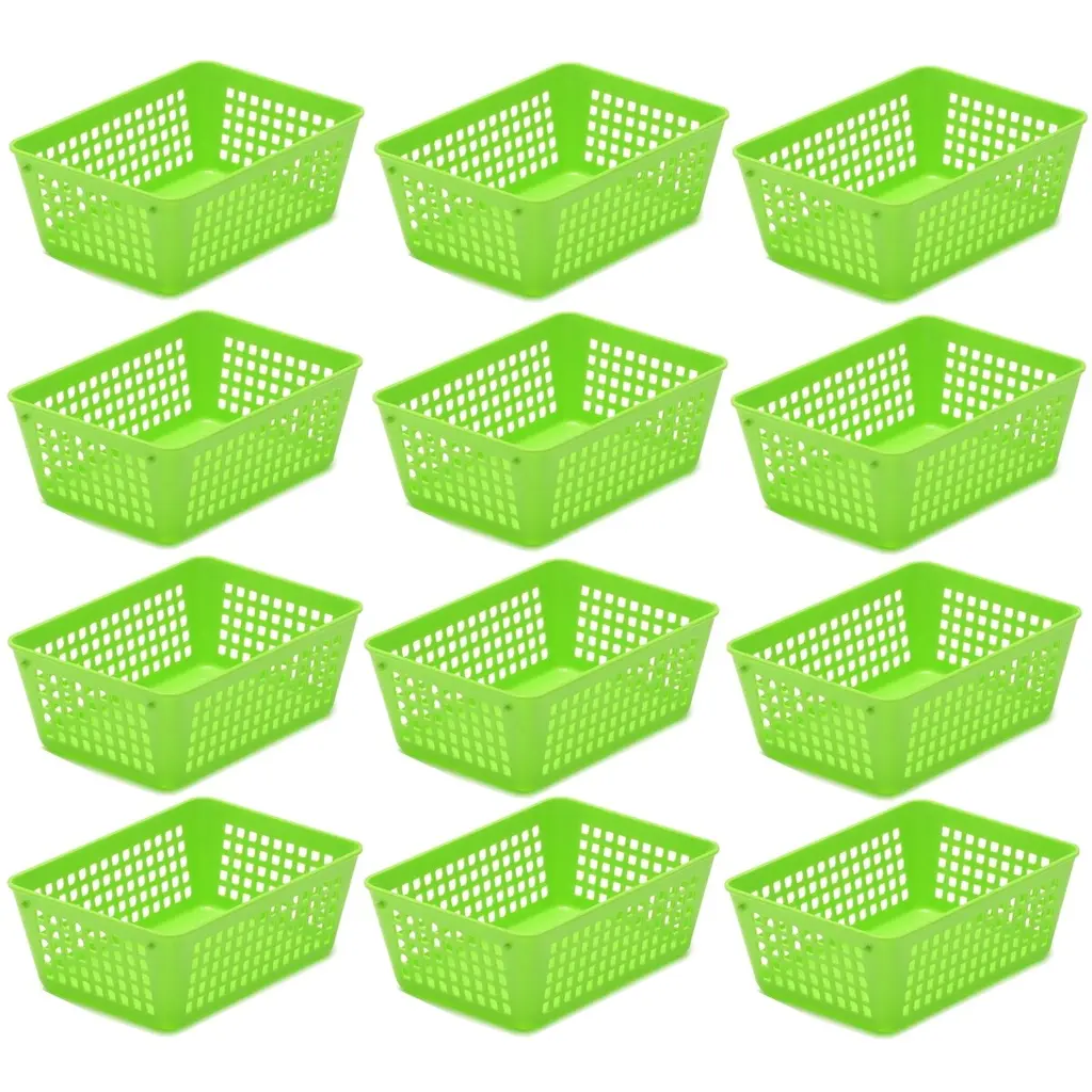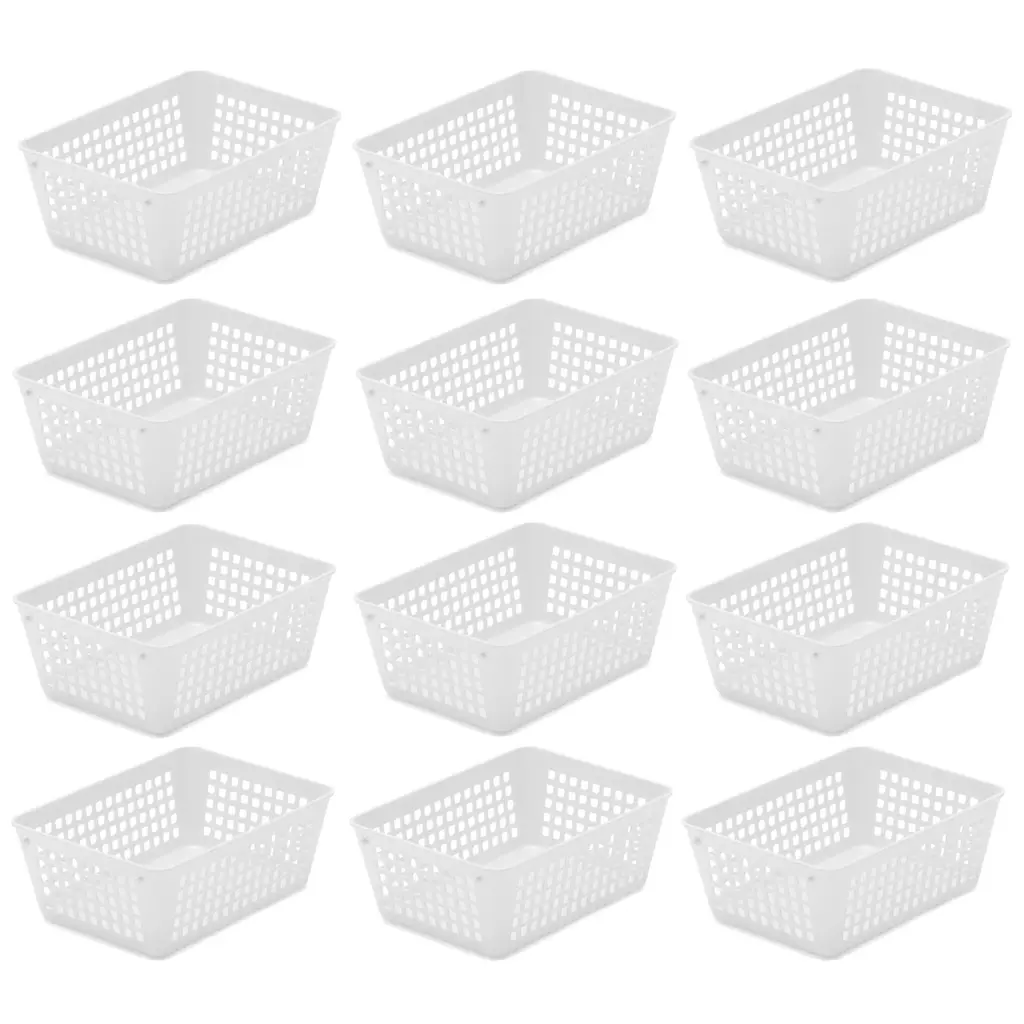 12-Pack Plastic Storage Baskets For Office Drawer, Classroom Desk - White