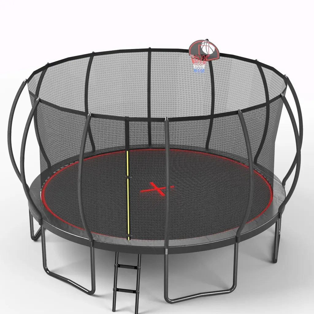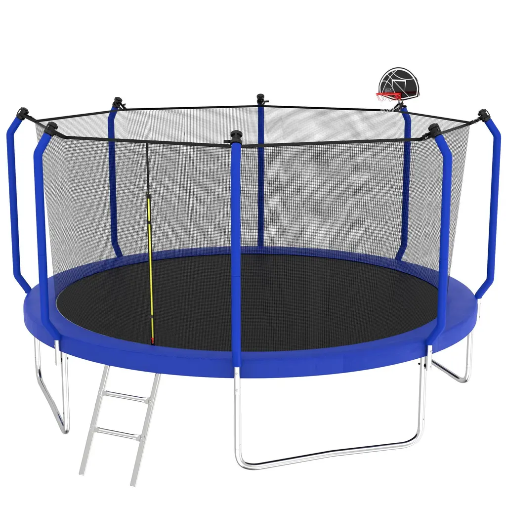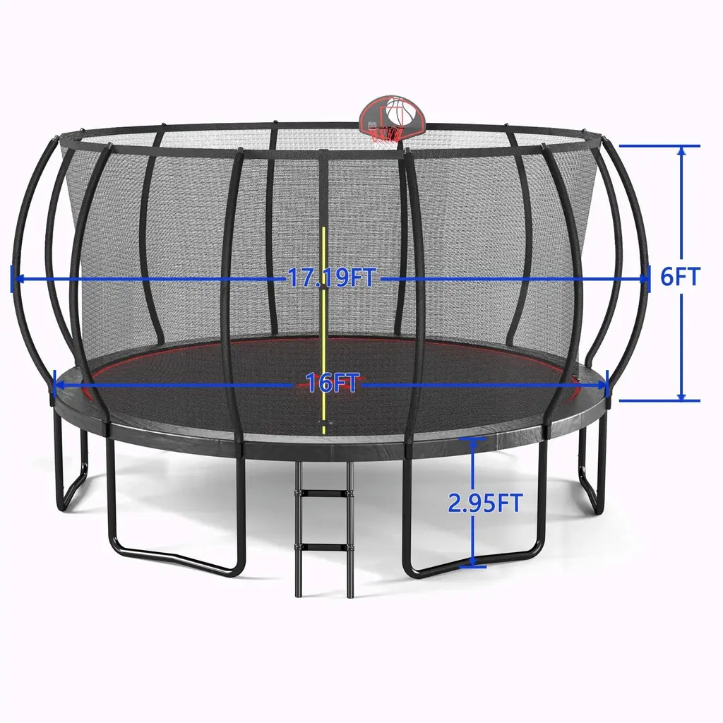 12/14/16ft Outdoor Trampoline With Steel Frame, Reinforced Jumping Mat, Basketball Hoop & Ladder For Kids - 16ft