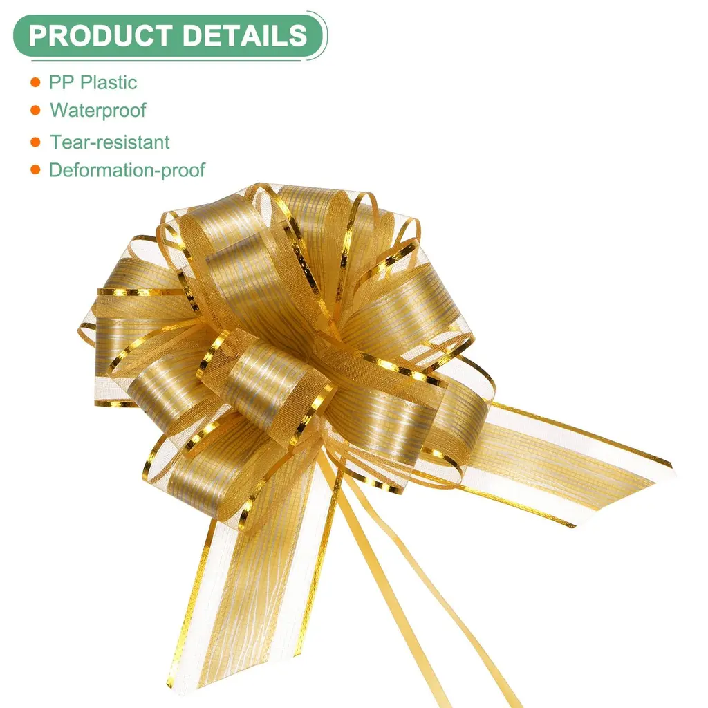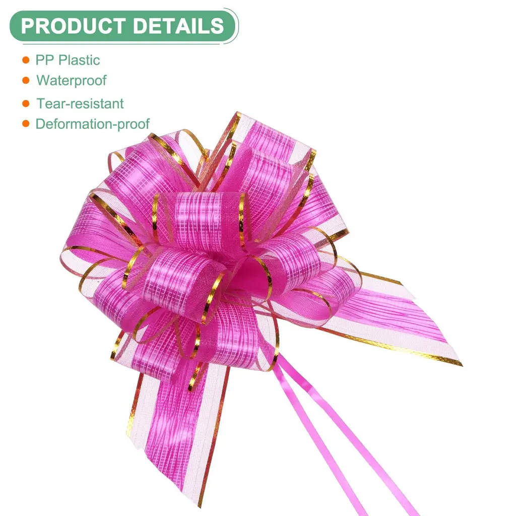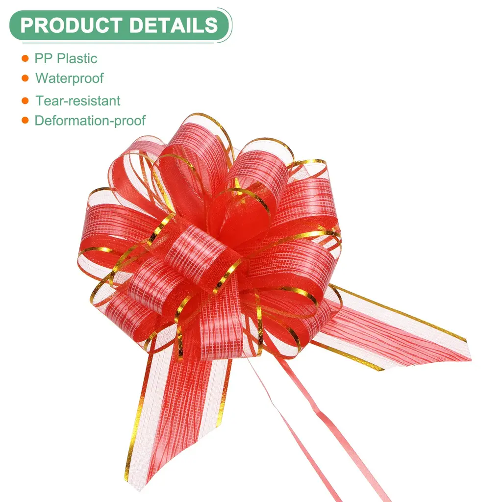 PRODUCT APPLICATION:1. Wrapping bows for presents is suitable for various occasions such as birthdays, weddings, holidays, parties, home decor, celebrations, walls, benches, and more.2. Great for enhancing the overall gifting experience during festive holidays like Christmas, Halloween, Thanksgiving, Teacher's Day, and Easter.PRODUCT DETAILS & INCLUDE:√ Material: Plastic√ Color: Red√ Expand Size: 22cm x 17cm /8.67" x 6.7"√ Package Inclue:12Pcs x bows for flower bouquetsPRODUCT ADVANTAGES1. The wrapping bows for presents are crafted from PP plastic, which is waterproof, tear-resistant, and deformation-proof, ensuring long-lasting durability.2. Smooth surface with a glossy appearance under lights, perfect for decorating floral arrangements, gift wrapping, gift baskets, DIY crafts, ribbon art, scrapbooking, adding visual appeal and charm.INSTALLATIONQuick and easy installation process adds a luxurious feel to your gifts effortlessly - simply pull apart the bow to reveal the pattern. Knotting at the top of the bow ensures secure fitting.