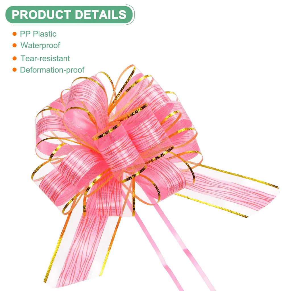 PRODUCT APPLICATION:1. Wrapping bows for presents is suitable for various occasions such as birthdays, weddings, holidays, parties, home decor, celebrations, walls, benches, and more.2. Great for enhancing the overall gifting experience during festive holidays like Christmas, Halloween, Thanksgiving, Teacher's Day, and Easter.PRODUCT DETAILS & INCLUDE:√ Material: Plastic√ Color: Red√ Expand Size: 22cm x 17cm /8.67" x 6.7"√ Package Inclue:12Pcs x bows for flower bouquetsPRODUCT ADVANTAGES1. The wrapping bows for presents are crafted from PP plastic, which is waterproof, tear-resistant, and deformation-proof, ensuring long-lasting durability.2. Smooth surface with a glossy appearance under lights, perfect for decorating floral arrangements, gift wrapping, gift baskets, DIY crafts, ribbon art, scrapbooking, adding visual appeal and charm.INSTALLATIONQuick and easy installation process adds a luxurious feel to your gifts effortlessly - simply pull apart the bow to reveal the pattern. Knotting at the top of the bow ensures secure fitting.