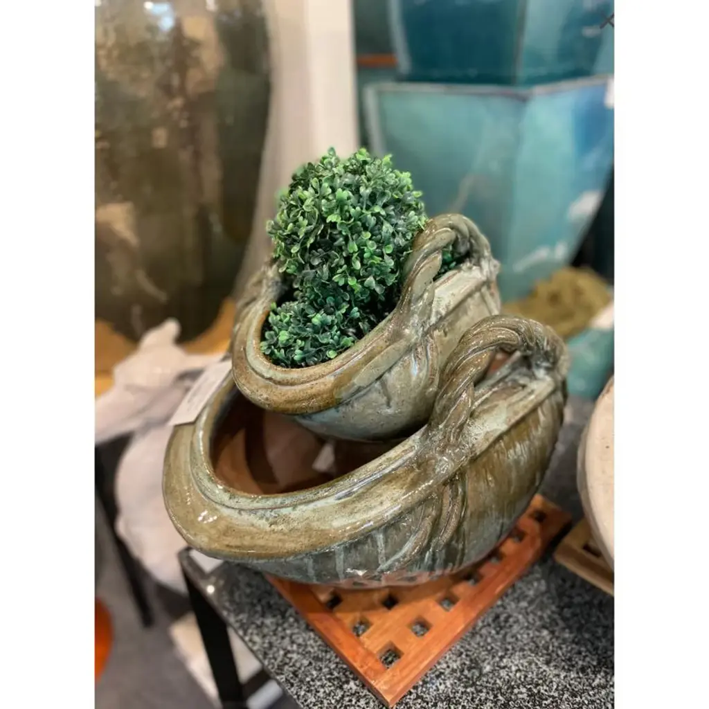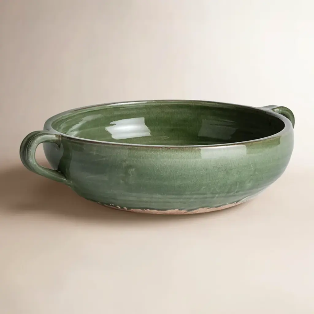 13.5" Large Two Handle Basket, Green Kelp Glaze