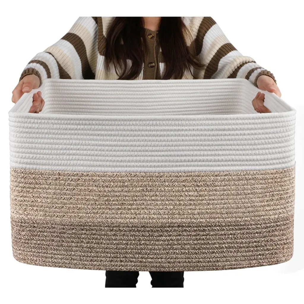 The Decorative Coiled Rope Square Base Tapered Basket from Brightroom™ is a great pick to add a stylish storage solution to your home. This decorative basket is made up of coils of white rope accented with tan leather handles for a simple yet chic look you'll love to have on display. At 13 inches by 6 inches by 14 inches, the basket is a perfect size for holding smaller items like mail, office supplies, magazines or detergent, stain remover and dryer sheets to help you organize any room in your room. Wherever you choose to place it, you'll appreciate how easily the neutral white and tan color combo coordinates with your current color palette.Brightroom™ started with a simple truth: When you’ve got it together, you feel better. Our versatile designs reveal the possibility in every closet, cupboard and drawer, and work together to create brilliant ways to organize your every day.Top Width: 13"Bottom Width: 11.5"Interior Height: 5.875"Interior Width: Top 12.5", Bottom 11"Interior Length: Top 13.5", Bottom 12"