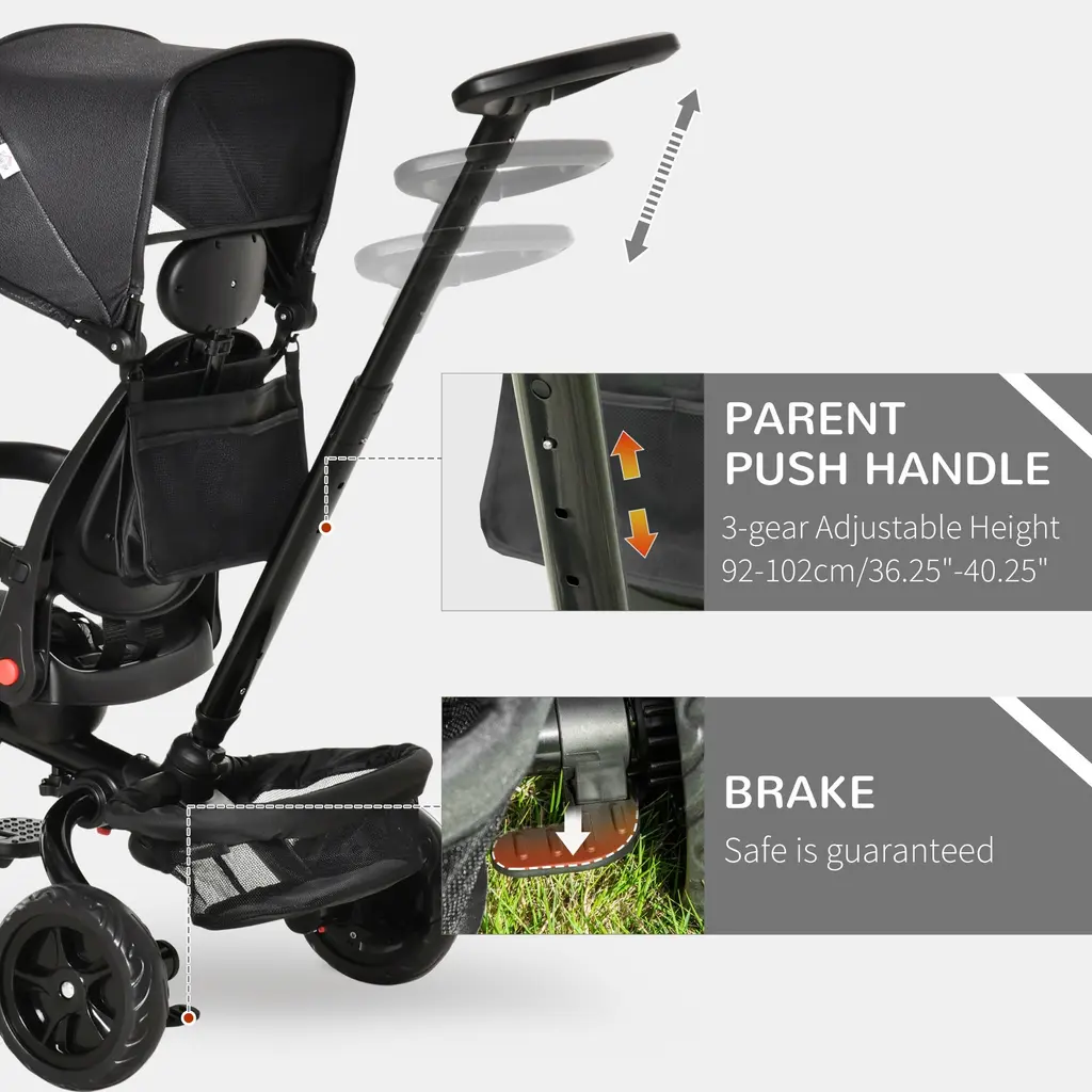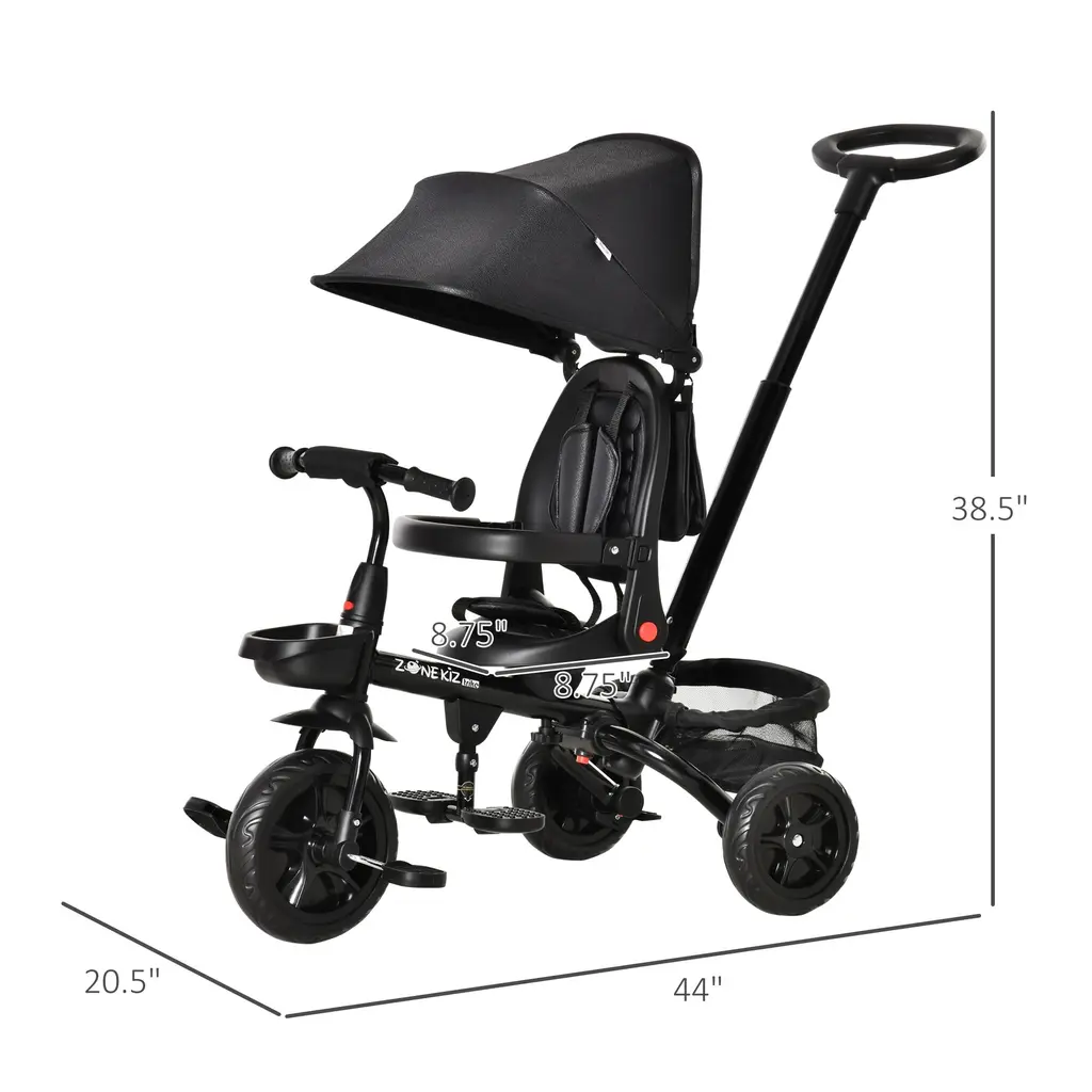 14-In-1 Kids Tricycle With Adjustable Parent Handle, Safety Bar, Storage Baskets, And Removable Canopy For Ages 1-5 - Black