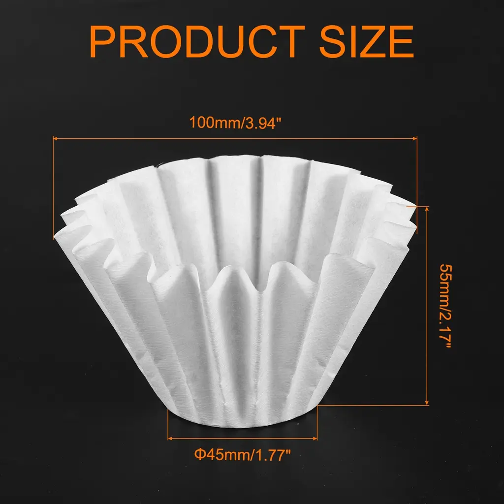 Description:【Food Grade Material】: The coffee filters are all made of paper.【Perfect Filtering】: These cone-shaped coffee filters can remove most oil, coffee particles, and foam, keeping the taste of the coffee itself.Perfectly for restaurants, coffee shops as well as home use! 【Easy to use and clean】: These disposable cone-shaped coffee filters are easy to use, and no need to clean them after use, just remove them and throw them away it, not need to clean.【Wide Appliction】: The coffee filter paper is suitable for daily use at home, restaurants, coffee shops, and for different coffee machines.Specification:Material: PaperShape: WavySize: Bottom diameter: 45mm/1.77in, Diameter: 100mm/3.94in,height: 55mm/2.17inColor: White Package Includes: 150Pcs x Coffee Filters