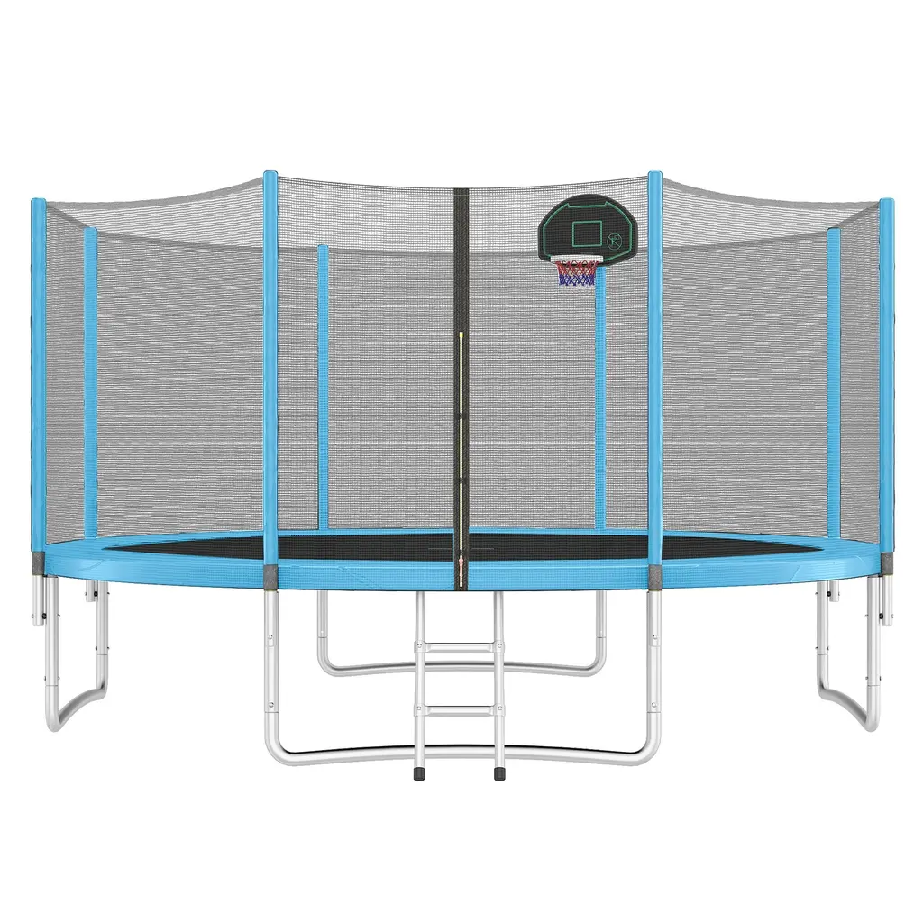 High-Dip Galvanized Frame – Our outdoor trampolines have galvanized steel frames, ensuring durability, weather resistance, and rust prevention.Multiple Safety Certificates Approved - exceeds all US/EU safety ratings and is officially ASTM safety certified F318-16 & F2225-15, CPC, ISO 14001 & 9001, Intertek, and BSCI approved.Enclosure Net Protection System - Our backyard trampoline features a high density, UV resistant safety enclosure net keeps children safe inside the enclosure. The foam padded safety enclosure poles come with extra PE sleeves provide an additional layer of protection and keep the foams from rust and corrosion.Our toddler trampoline jumping mat has passed 5,000 hours UV test, thicker V-Rings and bounce safely with extra rows of safety.