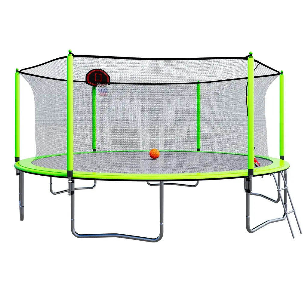 15ft Trampoline With Basketball Hoop Inflator And Ladder(inner Safety Enclosure) Green - Green
