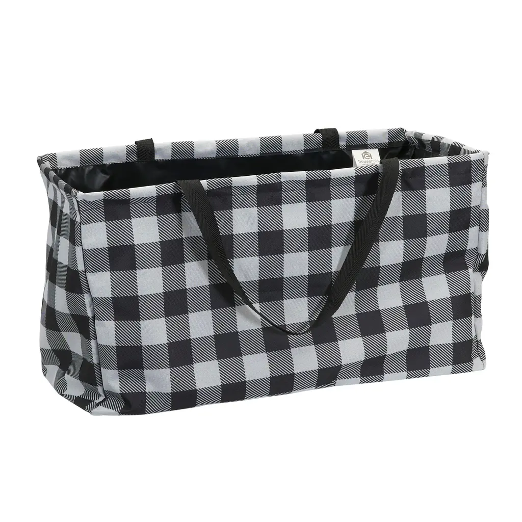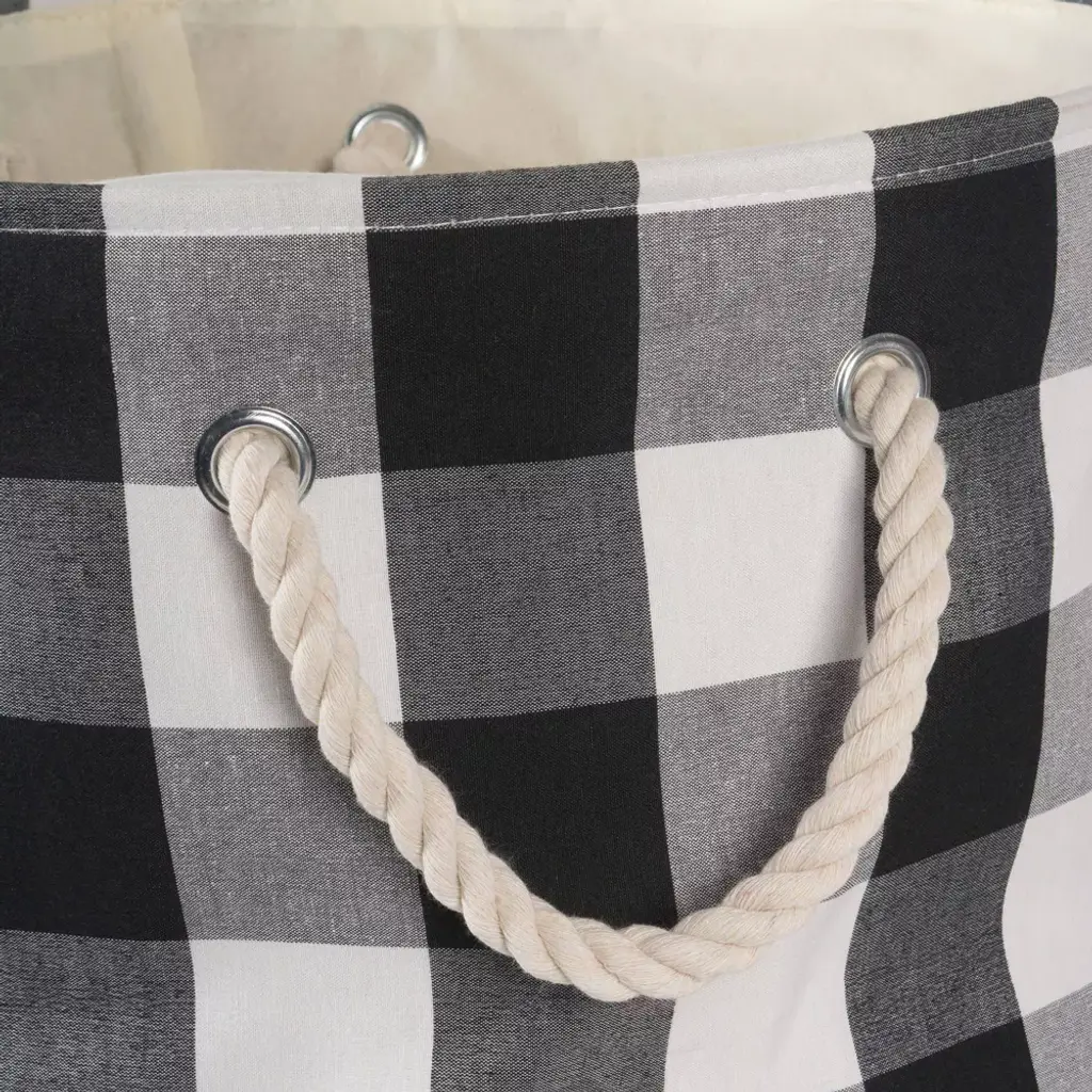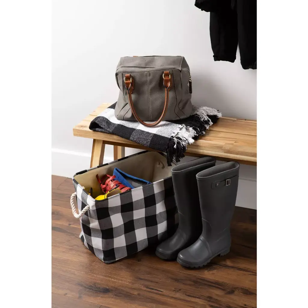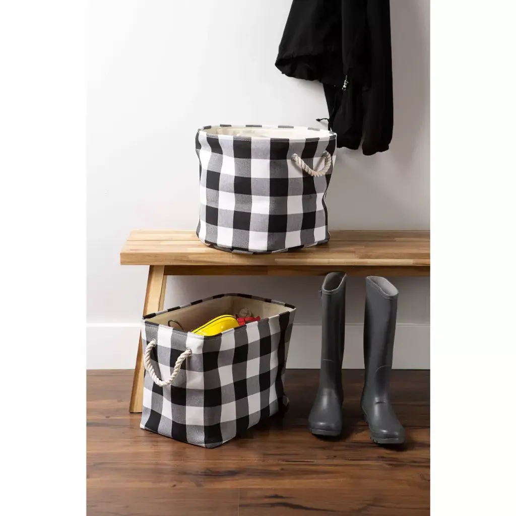 16"x10"x12" Medium Polyester Buffalo Check Rectangle Storage Bin White & Black - Design Imports: Decorative Black Storage