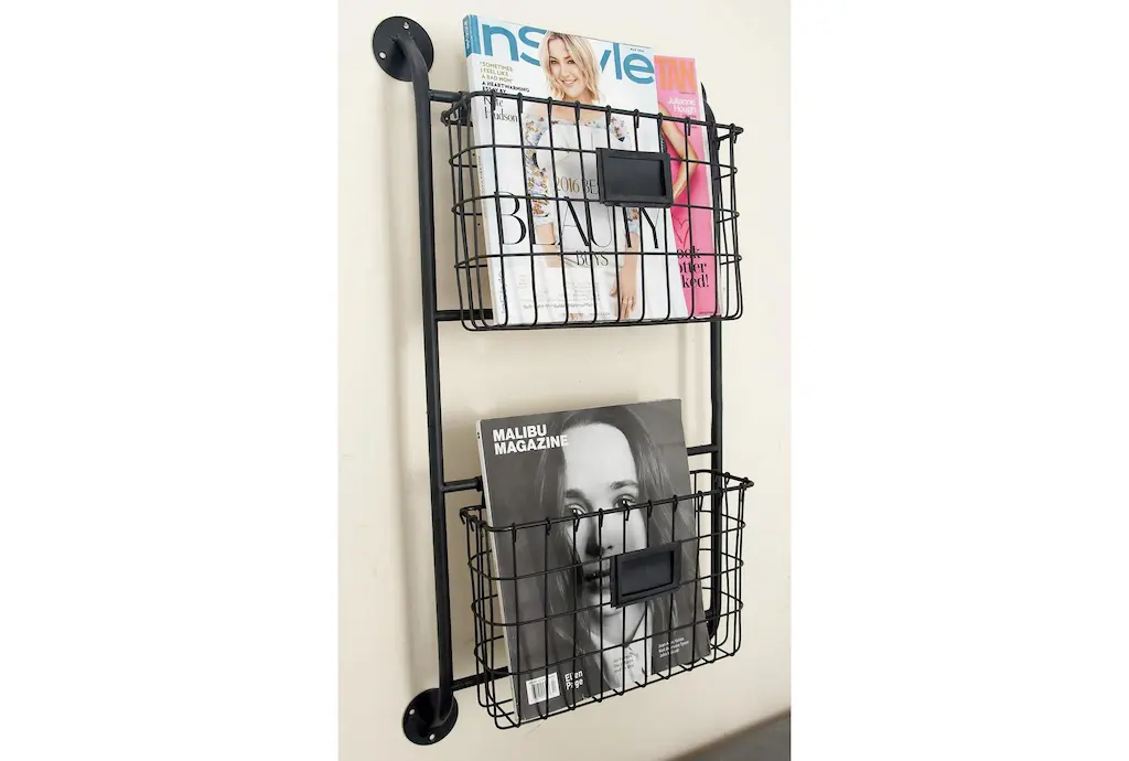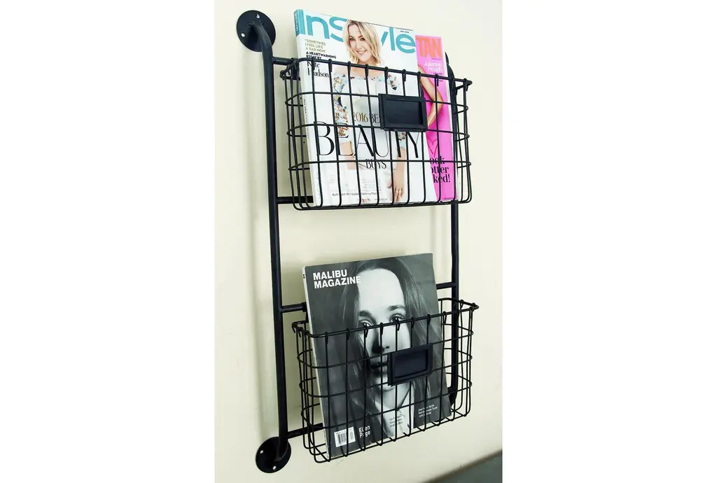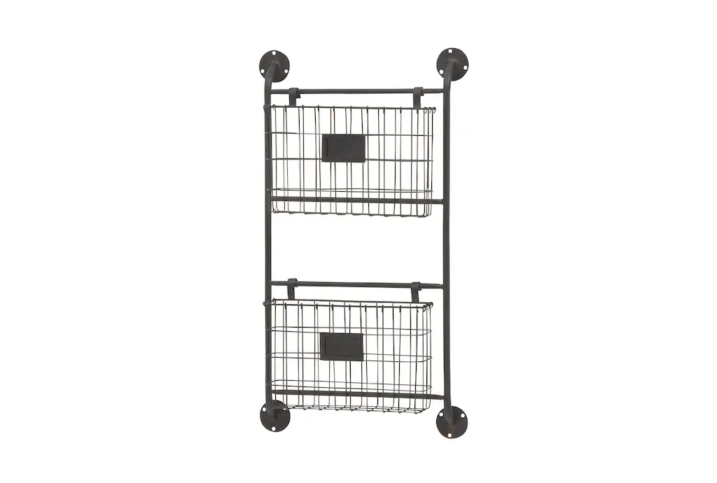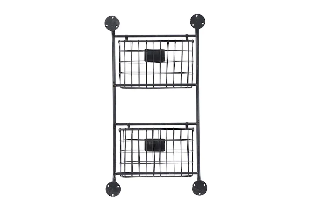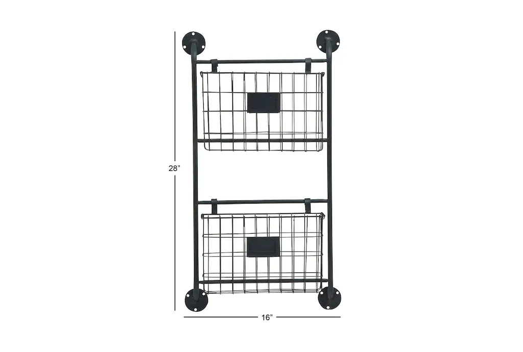 16x28 Black Natural Metal Wire 2 Tier Wall Basket Organizer | Hanging