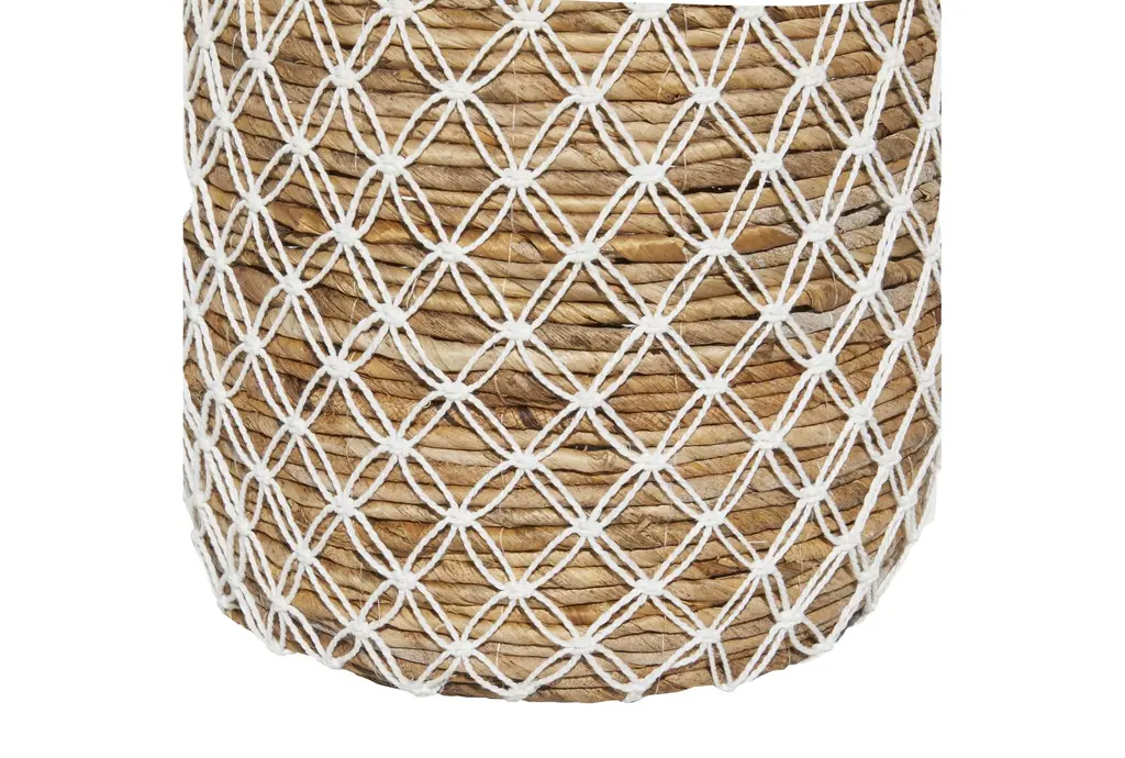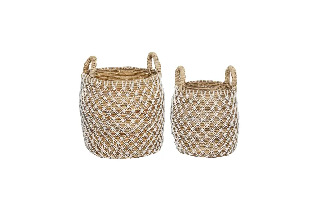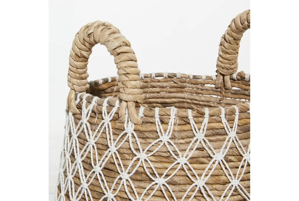 18" Brown Banana Leaf Handmade String Detail Storage Basket With Handles 2 Piece Set