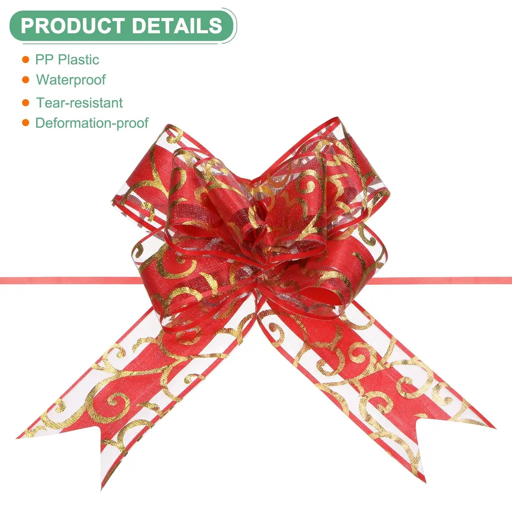 PRODUCT APPLICATION:1. Wrapping bows for presents is suitable for various occasions such as birthdays, weddings, holidays, parties, home decor, celebrations, walls, benches, and more.2. Great for enhancing the overall gifting experience during festive holidays like Christmas, Halloween, Thanksgiving, Teacher's Day, and Easter.PRODUCT DETAILS & INCLUDE:√ Material: Plastic√ Color: Red√ Expand Size: 20cm / 7.87"√ Package Inclue:20Pcs x bows for flower bouquetsPRODUCT ADVANTAGES1. The wrapping bows for presents are crafted from PP plastic, which is waterproof, tear-resistant, and deformation-proof, ensuring long-lasting durability.2. Smooth surface with a glossy appearance under lights, perfect for decorating floral arrangements, gift wrapping, gift baskets, DIY crafts, ribbon art, scrapbooking, adding visual appeal and charm.INSTALLATIONQuick and easy installation process adds a luxurious feel to your gifts effortlessly - simply pull apart the bow to reveal the pattern. Knotting at the top of the bow ensures secure fitting.
