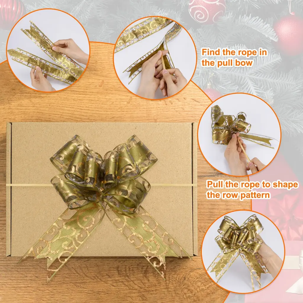 20pcs Large Pull Bow 8 Inch Bows For Wedding Baskets Decorations - Gold Tone