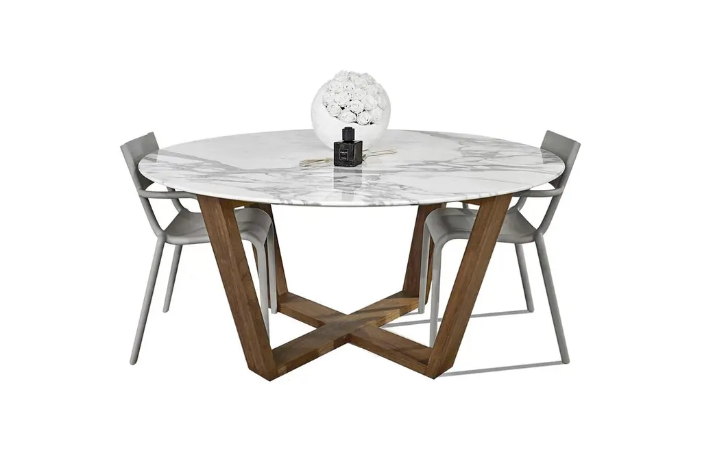 Round basket table, a unique Carrara marble and teakwood dining table designed in different sizes either for a more intimate conversation or for a number of people. The teak structure makes them perfect too for an outdoor location and an elegant solution for any event.Initially presented at the annual Marble Macc fair 2017, in Verona, ItalyAlso available in a choice of marble: Bianco Carrara, Calacatta.