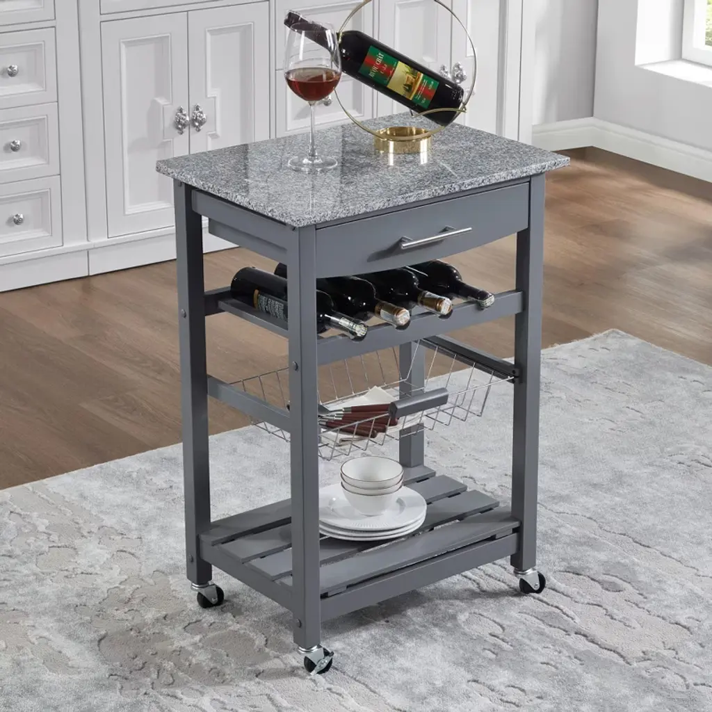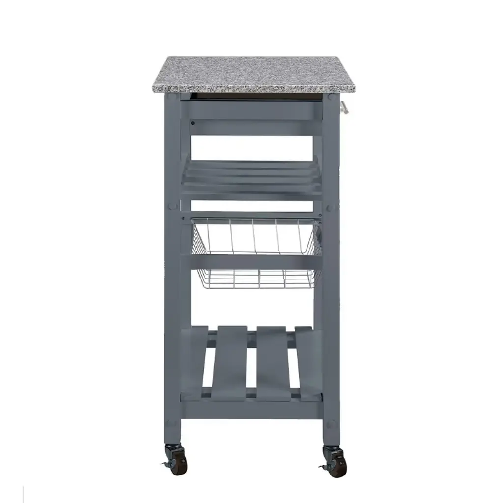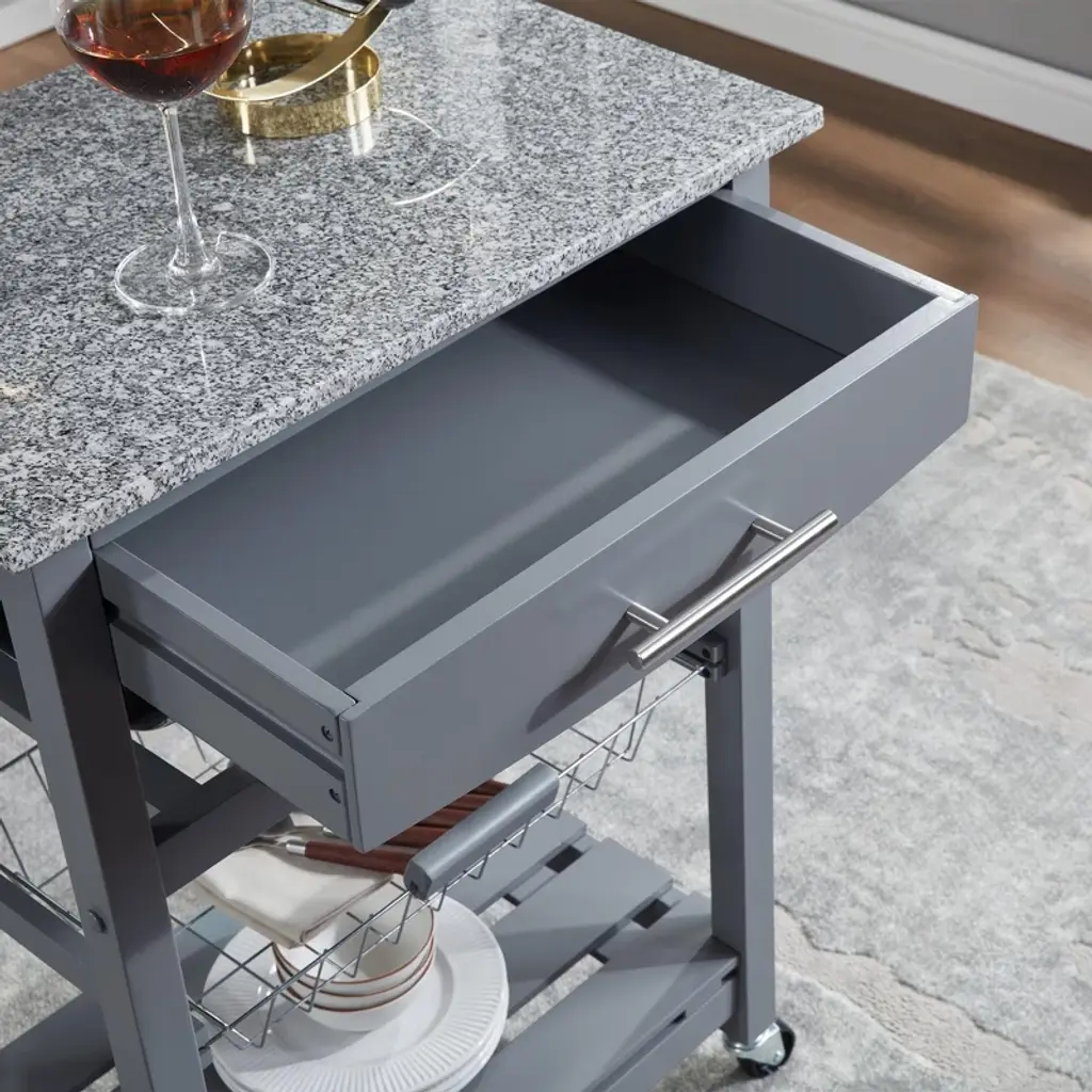 22.5"mobile Rolling Kitchen Island Trolley Serving Cart With Marble Top,underneath Drawer & Slide-out Wire Storage Basket,grey