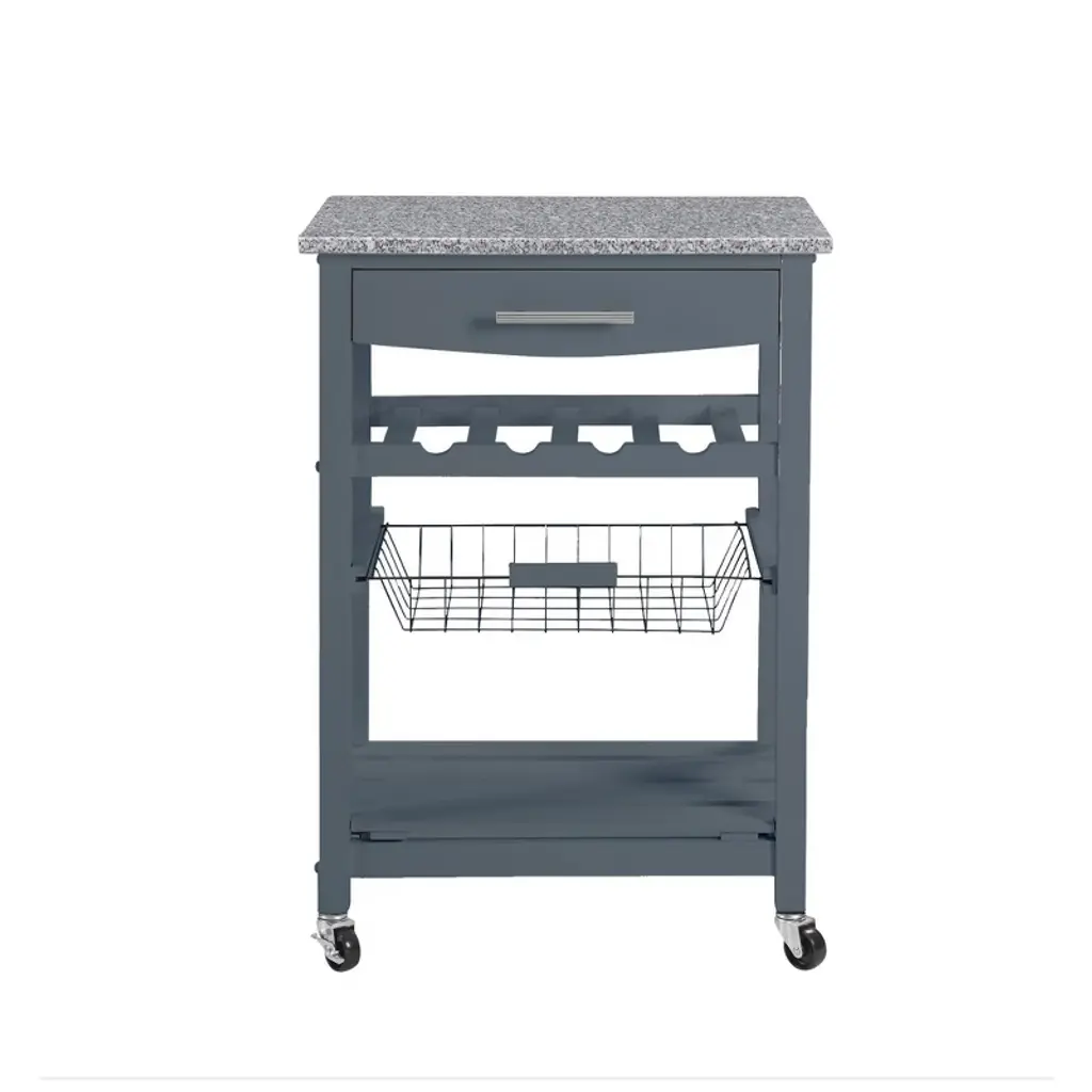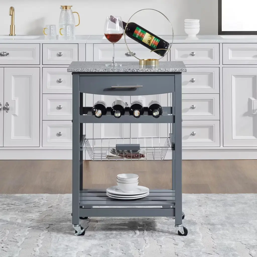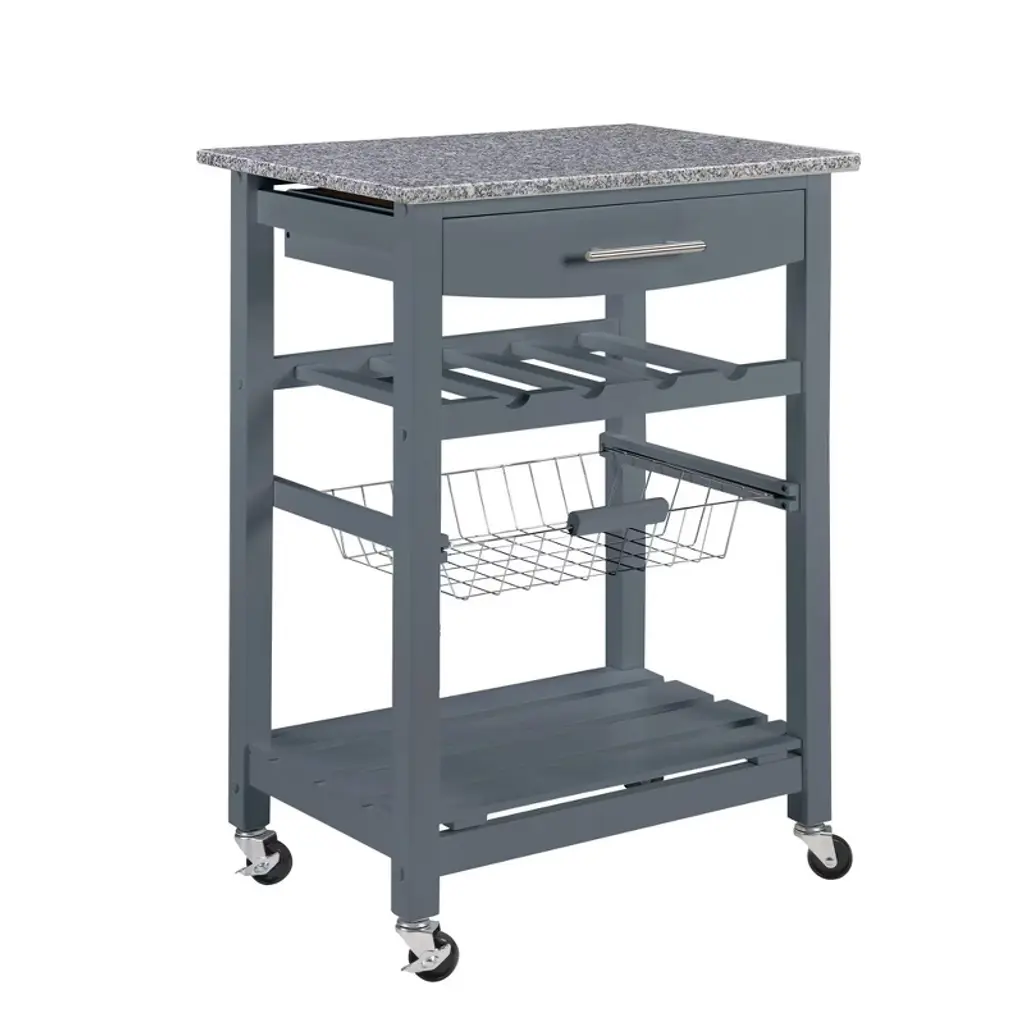 22.5"mobile Rolling Kitchen Island Trolley Serving Cart With Marble Top,underneath Drawer & Slide-out Wire Storage Basket,grey
