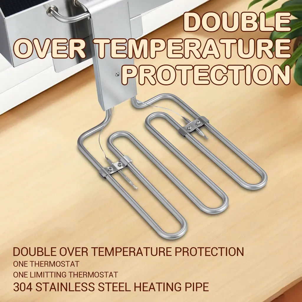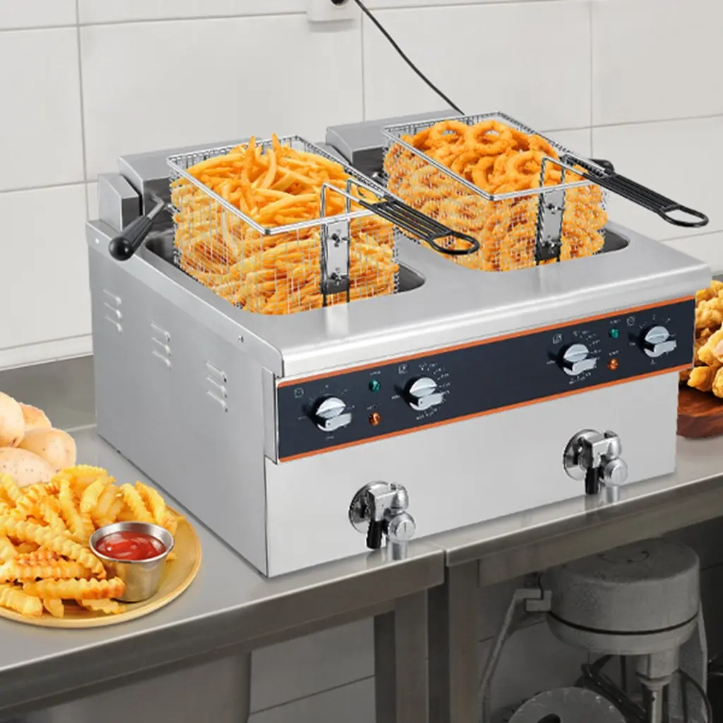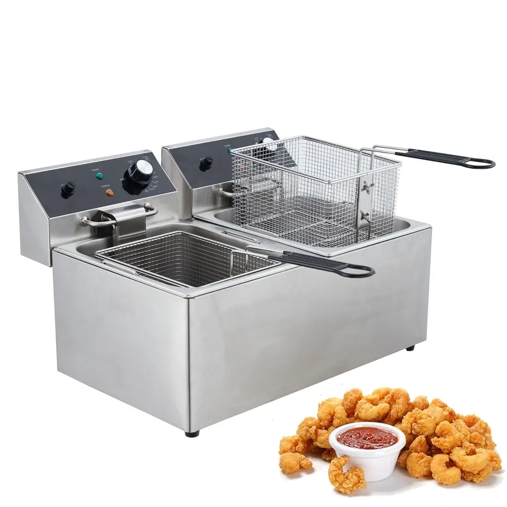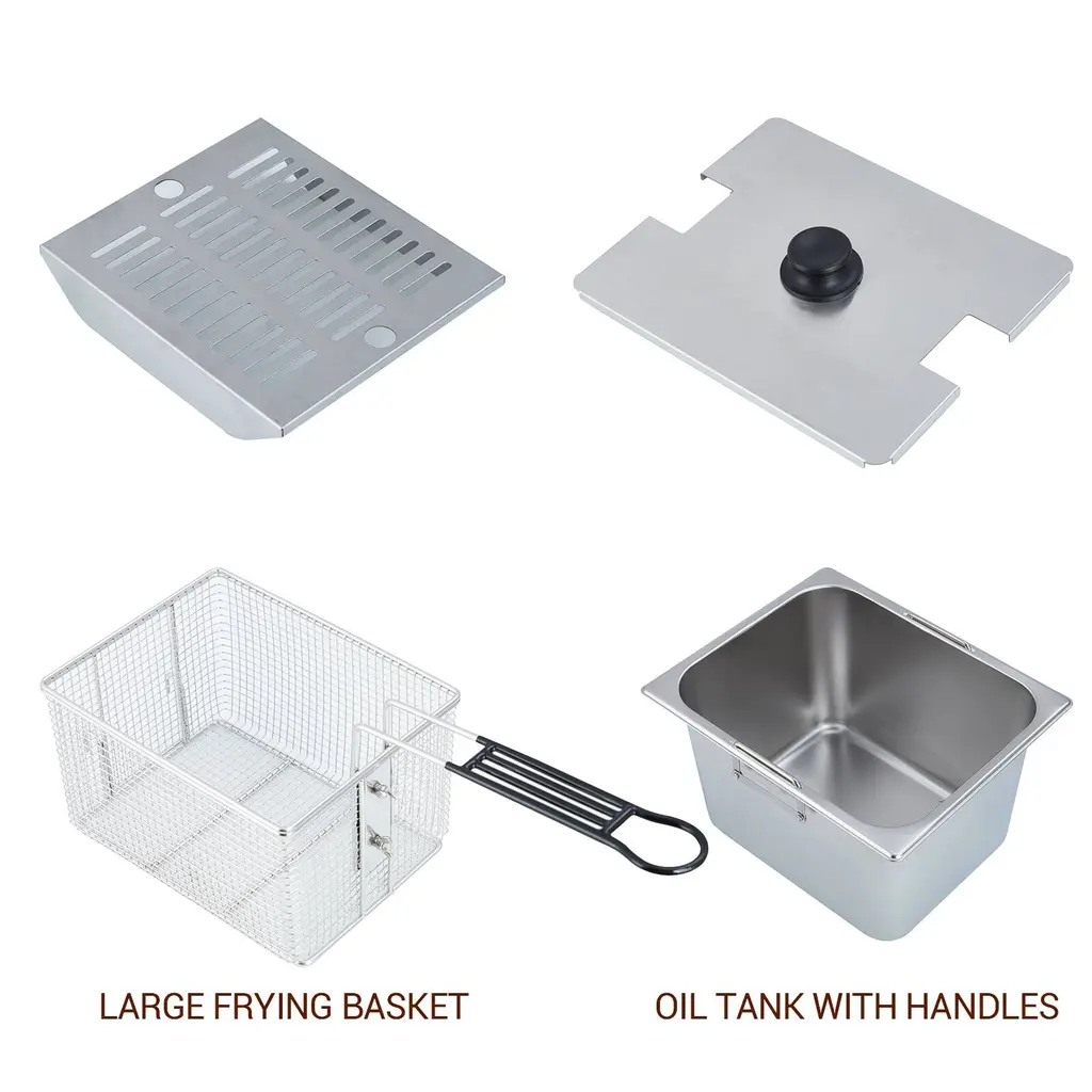 Indulge in your favorite American classics with this versatile deep fryer. From crispy fried chicken and golden shrimp to perfectly cooked French fries and chips, this electric deep fryer delivers delicious results every time.PROFESSIONAL-GRADE DEEP FRYER - Made of durable stainless steel, this deep fryer is suitable for both commercial and home use. Perfect for home occasions such as parties, movie nights, dinners, and family gatherings, and also ideal for commercial establishments such as restaurants, supermarkets, fast food stands, and snack bars.RAPID FRYING & USER-FRIENDLY OPERATION - The 1800-watt immersion-type element preheats and recovers oil temperature rapidly. U-shaped stainless steel heating tubes ensure even heat distribution. The temperature knob allows separate control of the tank, so you can select the ideal temperature for different types of food. Temperature Range: 50℃ - 200℃ (122℉ - 392℉).LARGE CAPACITY & FAMILY-SIZED - With a generous capacity of 12L/12.7QT per tank, this deep fryer is suitable for the whole family and commercial use, and is perfect for frying sweet and savory recipes, including chips, fish, chicken, doughnuts, fritters, onion rings, shrimp, and more.USER-CENTRIC DESIGN - The stainless steel lid cover prevents oil from splashing and safely covers the oil when the fryer is not in use. The fryer basket with a plastic handle prevents scalding of your hands and ensures safety. A residue plate is included for filtering out the dregs. The built-in overheating protection will automatically activate and cut off the power if the machine has been used for an extended period. What's more, each side has a power plug, which allows one to operate each side separately and fry different kinds of food at the same time. MAX power: 3600W (1800W for each plug).EASY TO CLEAN - The lid, fryer pot, basket, and housing are detachable for easy cleaning. The heating element can be removed for immersion in water, but should never be placed in a dishwasher. It's important to ensure that the electric unit does not get wet.