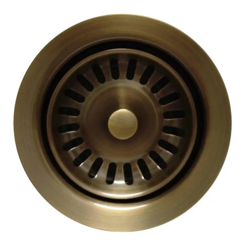 Durable, functional and beautiful, our strainer drains for kitchen sinks are made of solid brass to endure strength and durability. This polished brass finish will not only Complement our brass sinks perfectly, they will also match a variety of different sink materials and colors. This drain does not connect to a garbage disposal.3.5" Deluxe Garbage Disposal Drain with Basket in Polished Brass Features:INCLUDED:Drain Suggested Accessories: