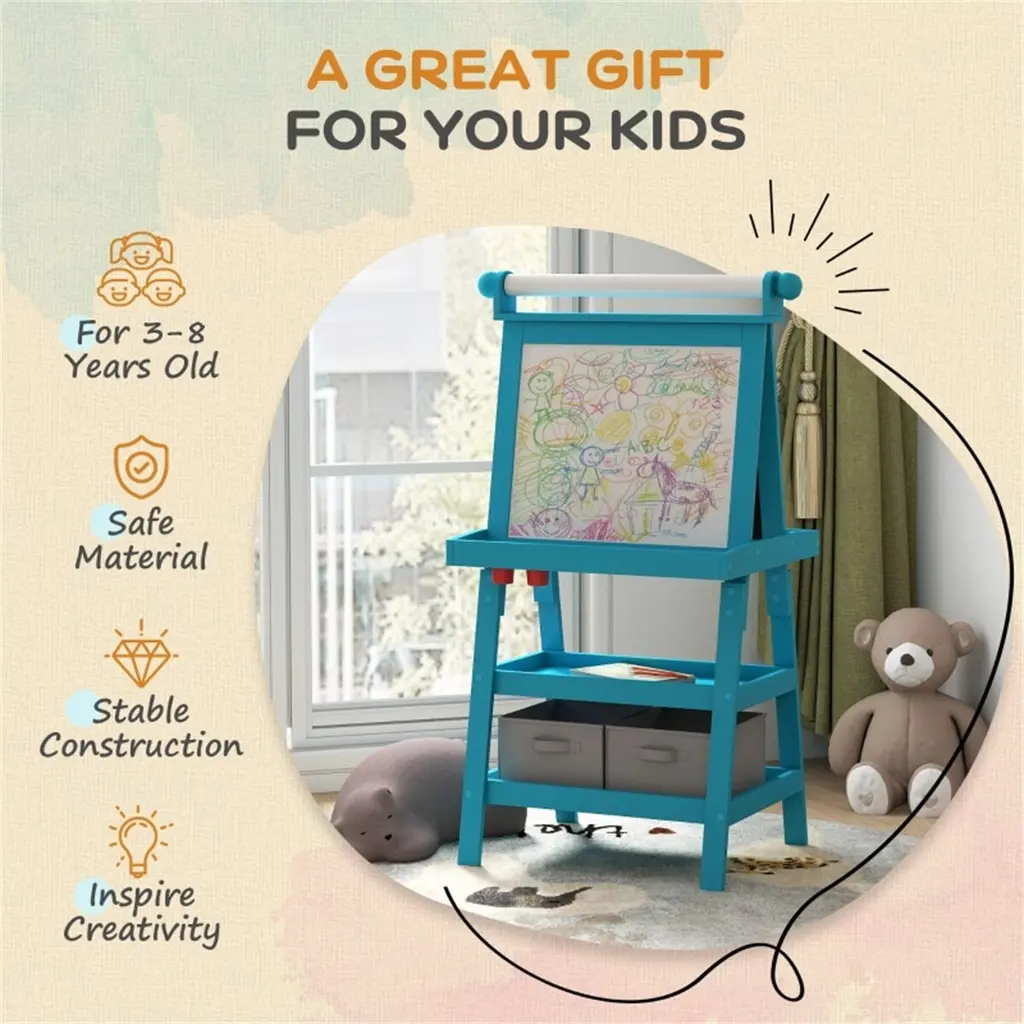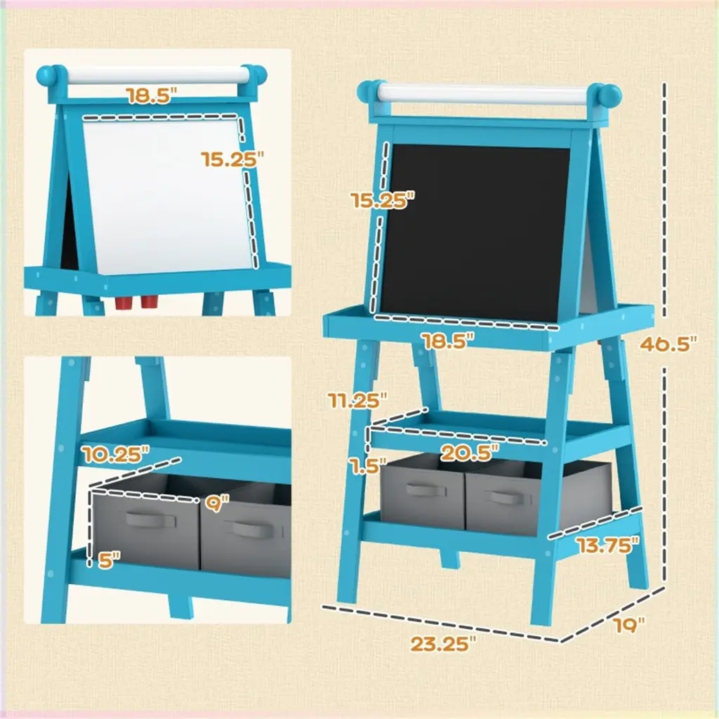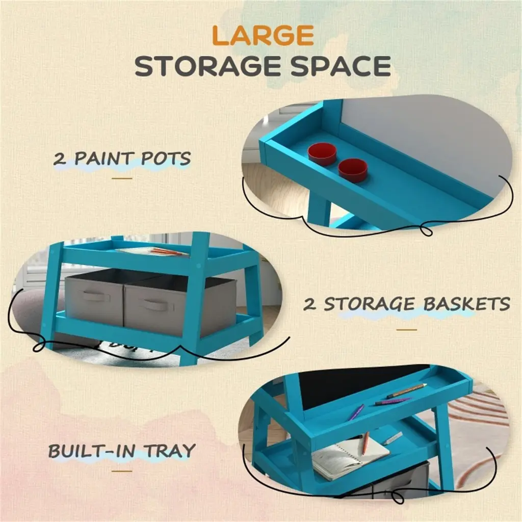 3 In 1 Children's Toys Double-Sided Easel With Two Storage Baskets - Blue
