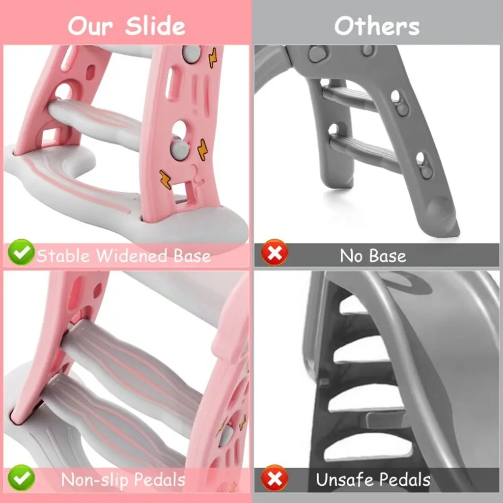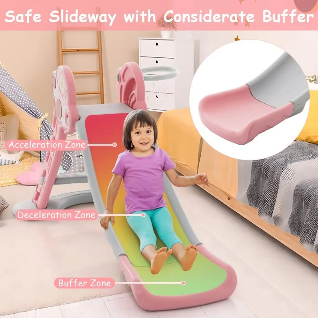 3-In-1 Folding Slide Playset With Basketball Hoop And Small Basketball - 52.5" X 32" X 17" (L X W X H) - Pink