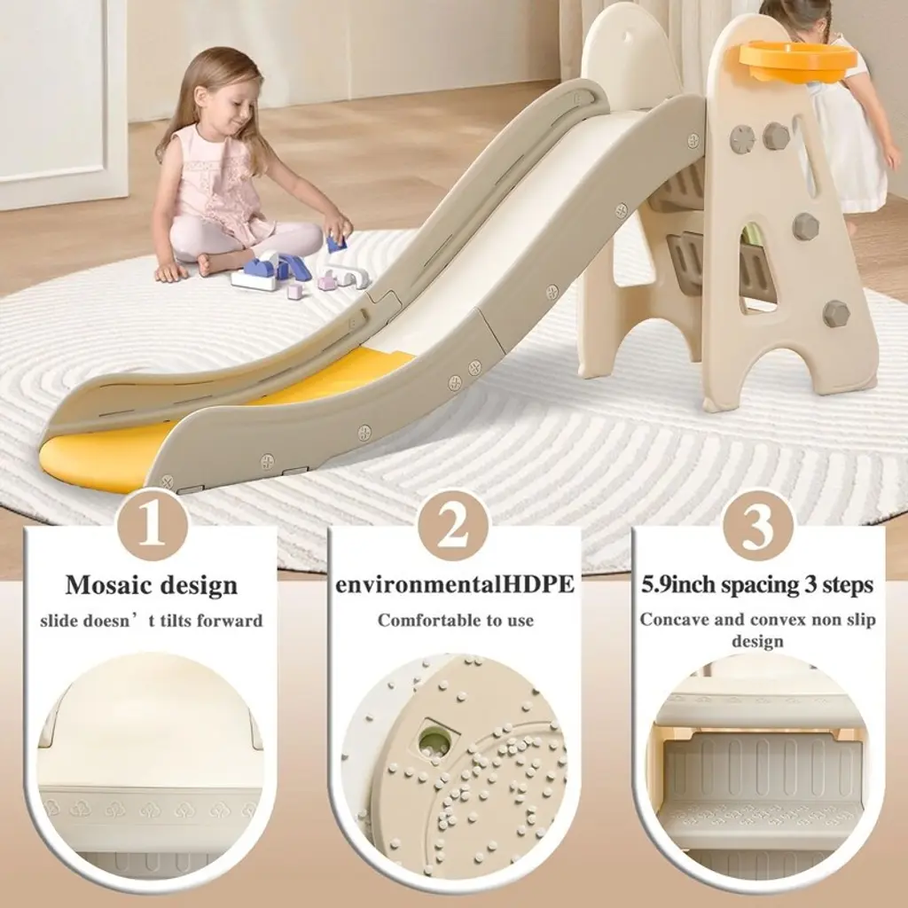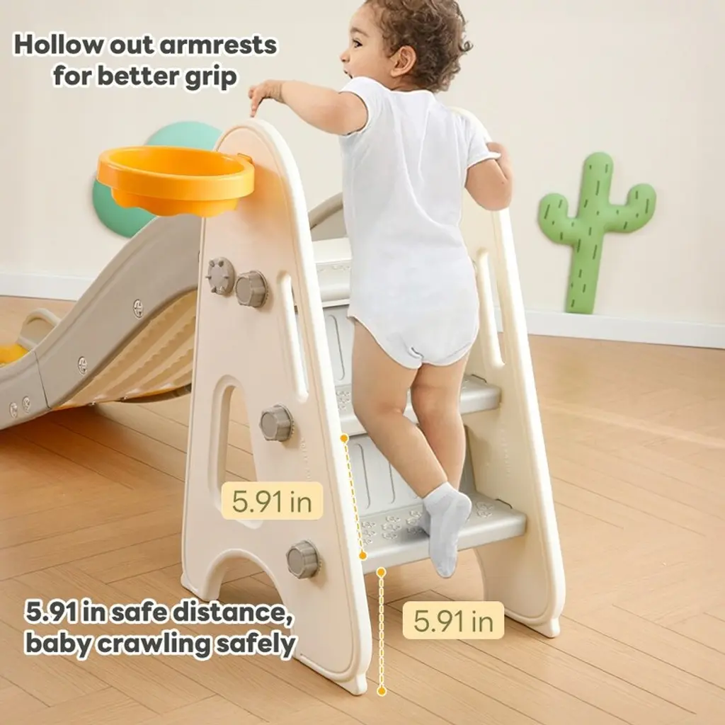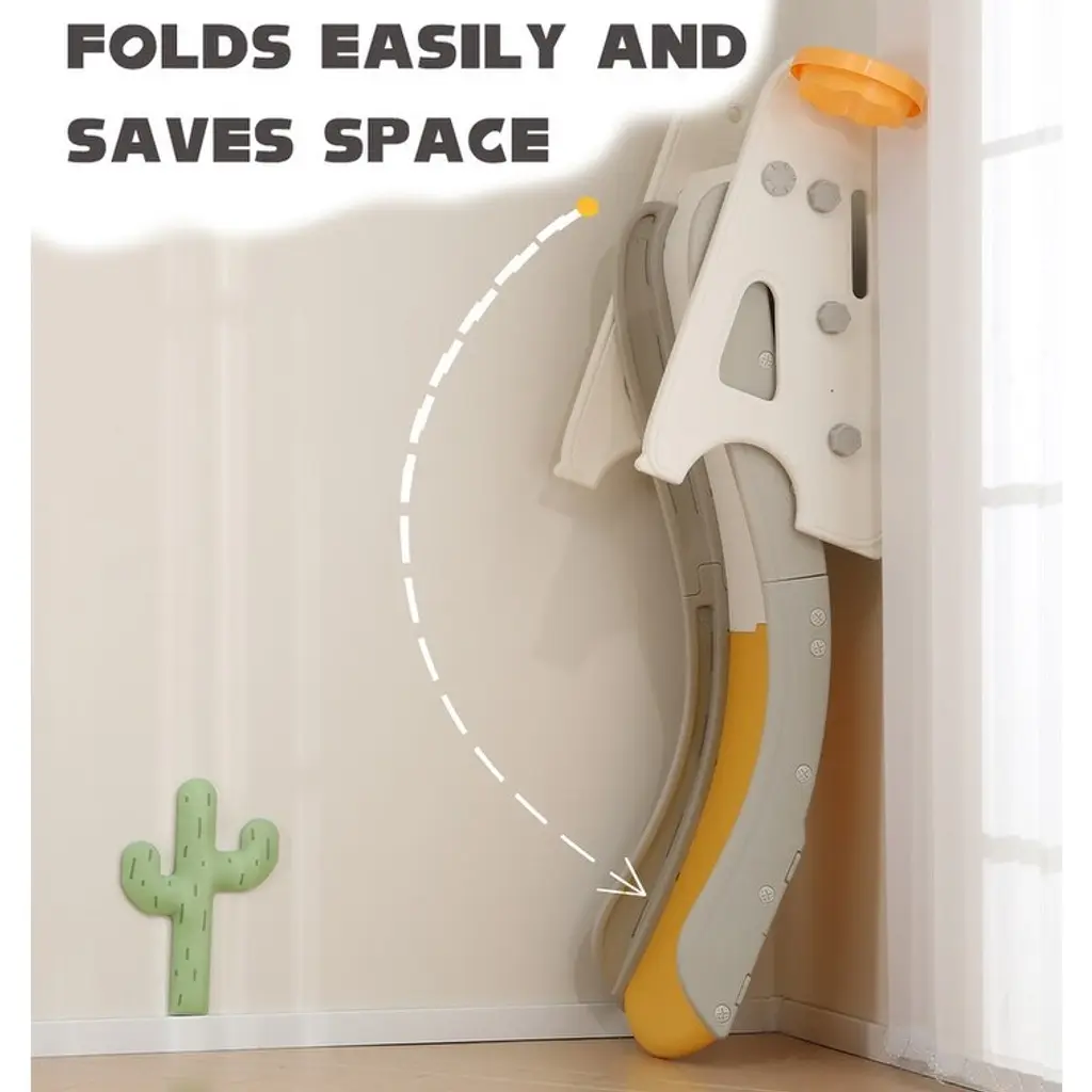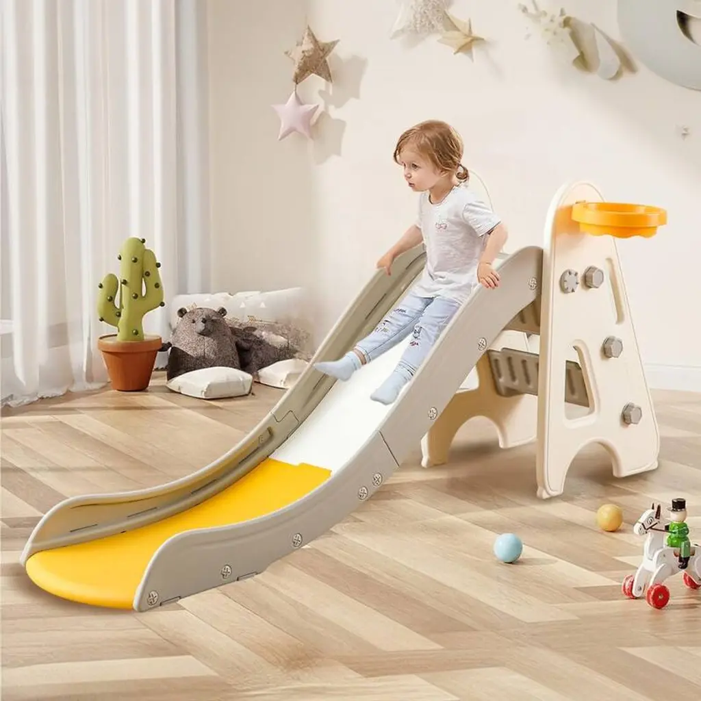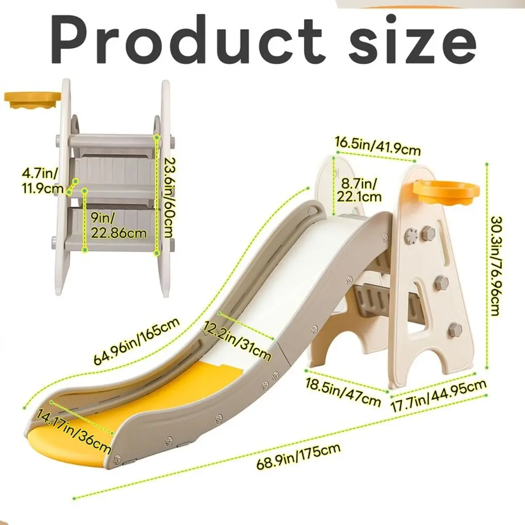 3 In 1 Toddler Slide For Kids Age 1-7,kid Play Climber Slide Playset,folding Slide With Basketball Hoops&ball,indoor & Outdoor - Sght-Yellow