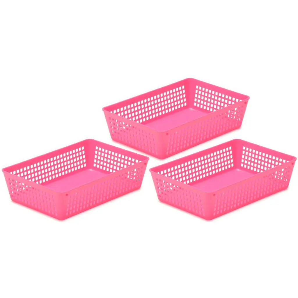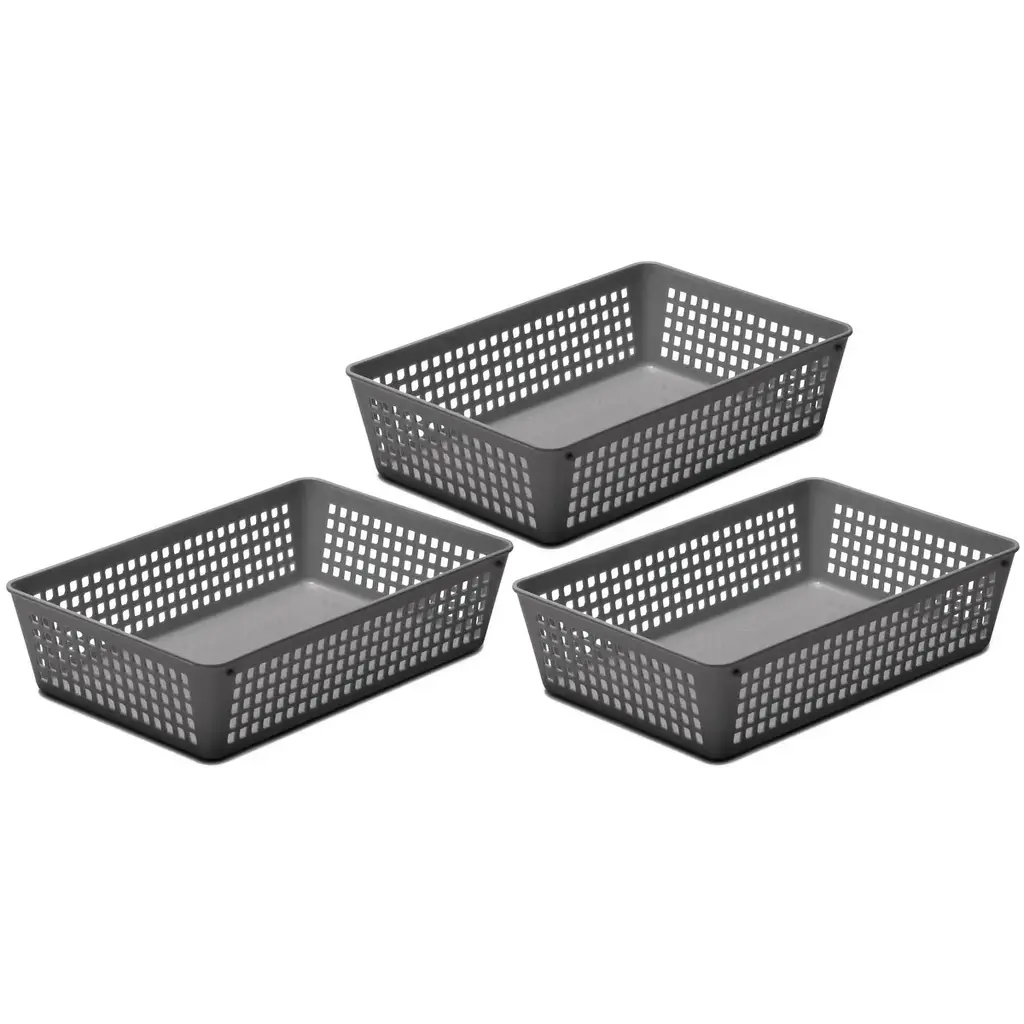 3-Pack Plastic Storage Baskets For Office Drawer, Classroom Desk - Grey