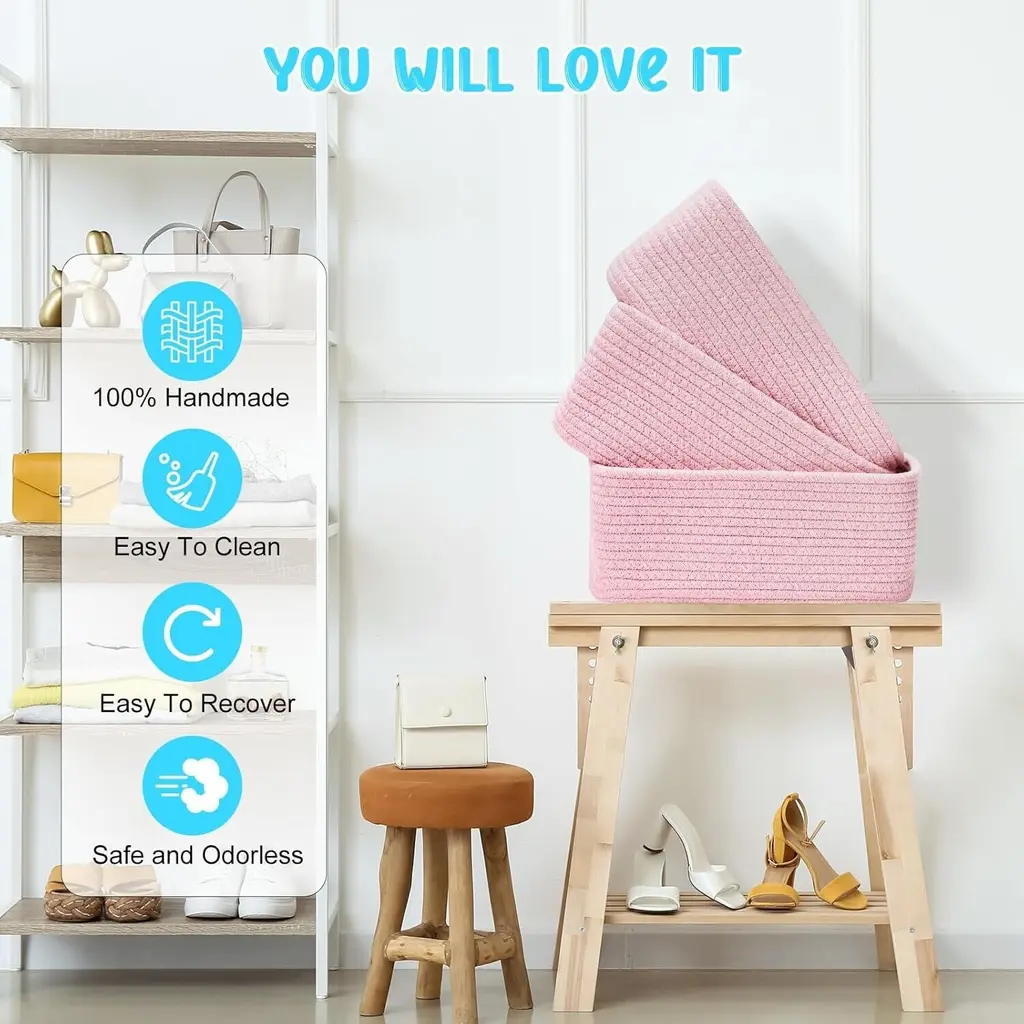 3-Pack Shelf Baskets For Organizing, Storage Baskets, Storage Organizer - 1.5"l X 0.5"w X 1"h - Mixpink