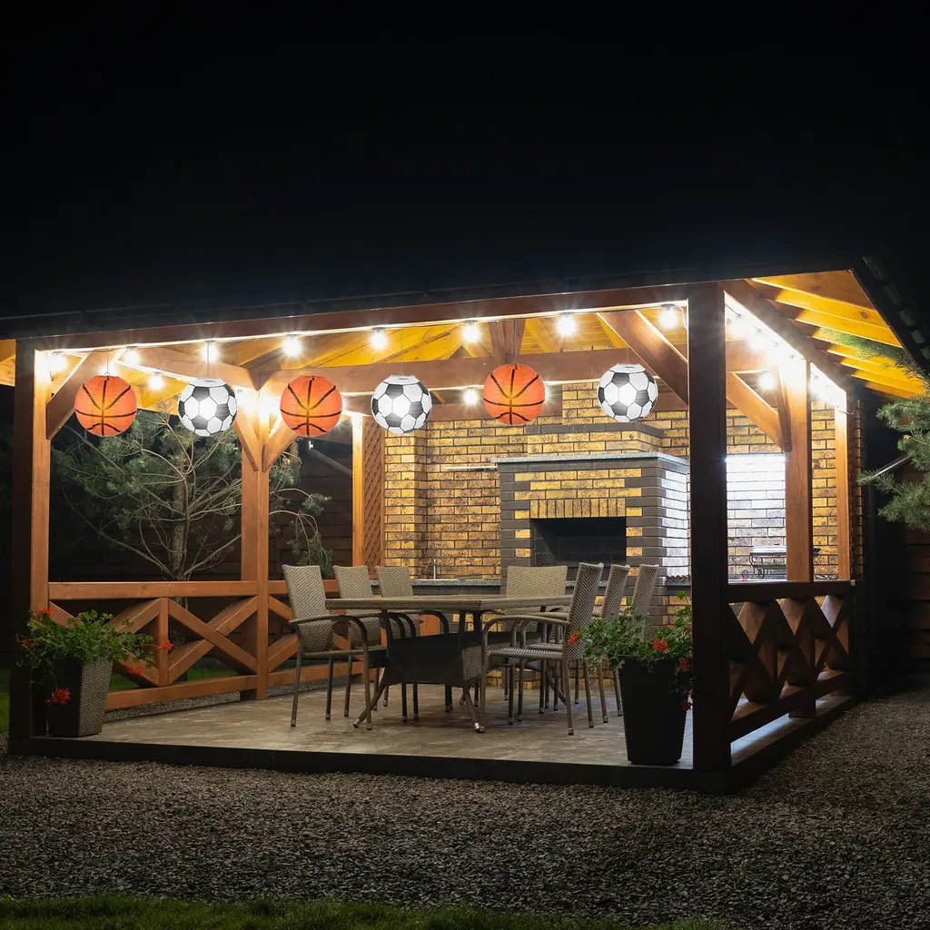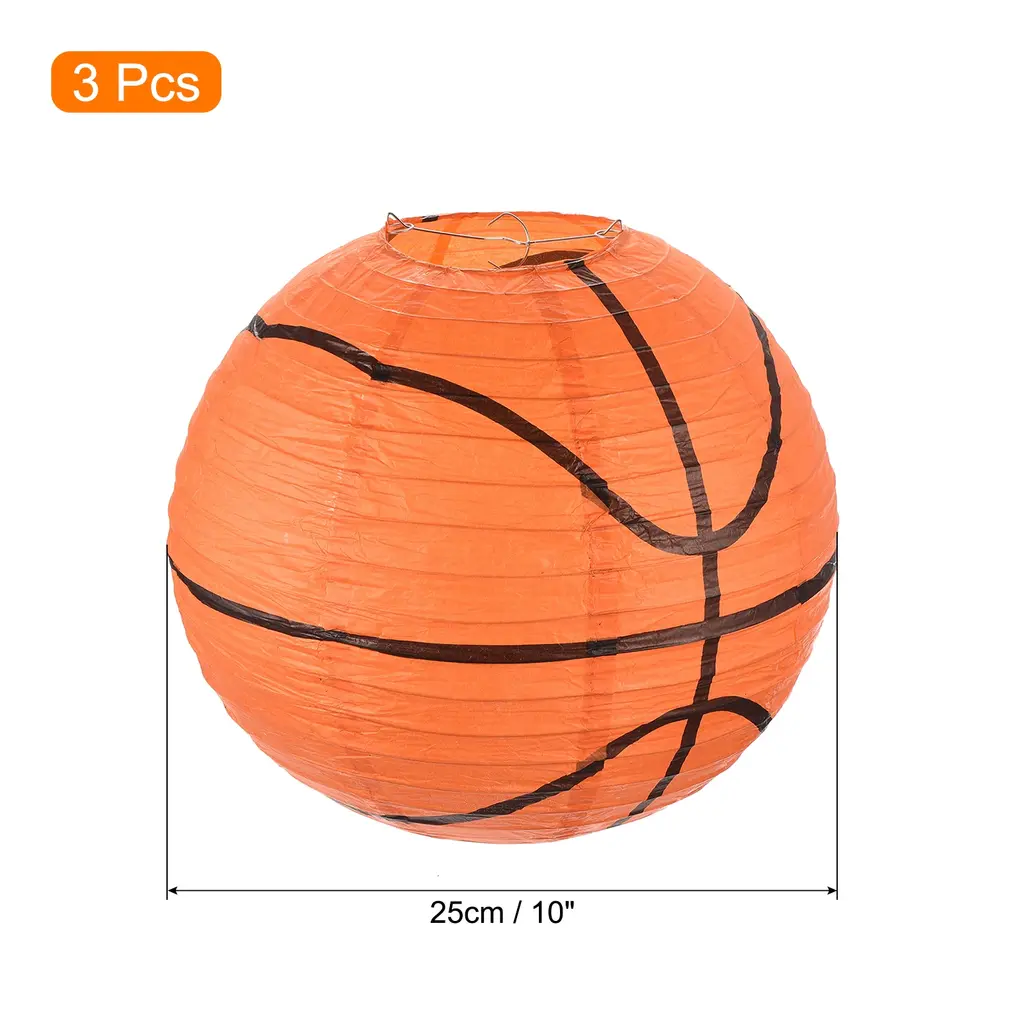 3 Pcs Basketball Paper Lanterns Round Hanging Chinese/japanese Decor - Orange - 8"