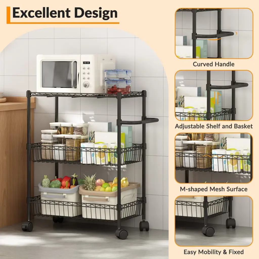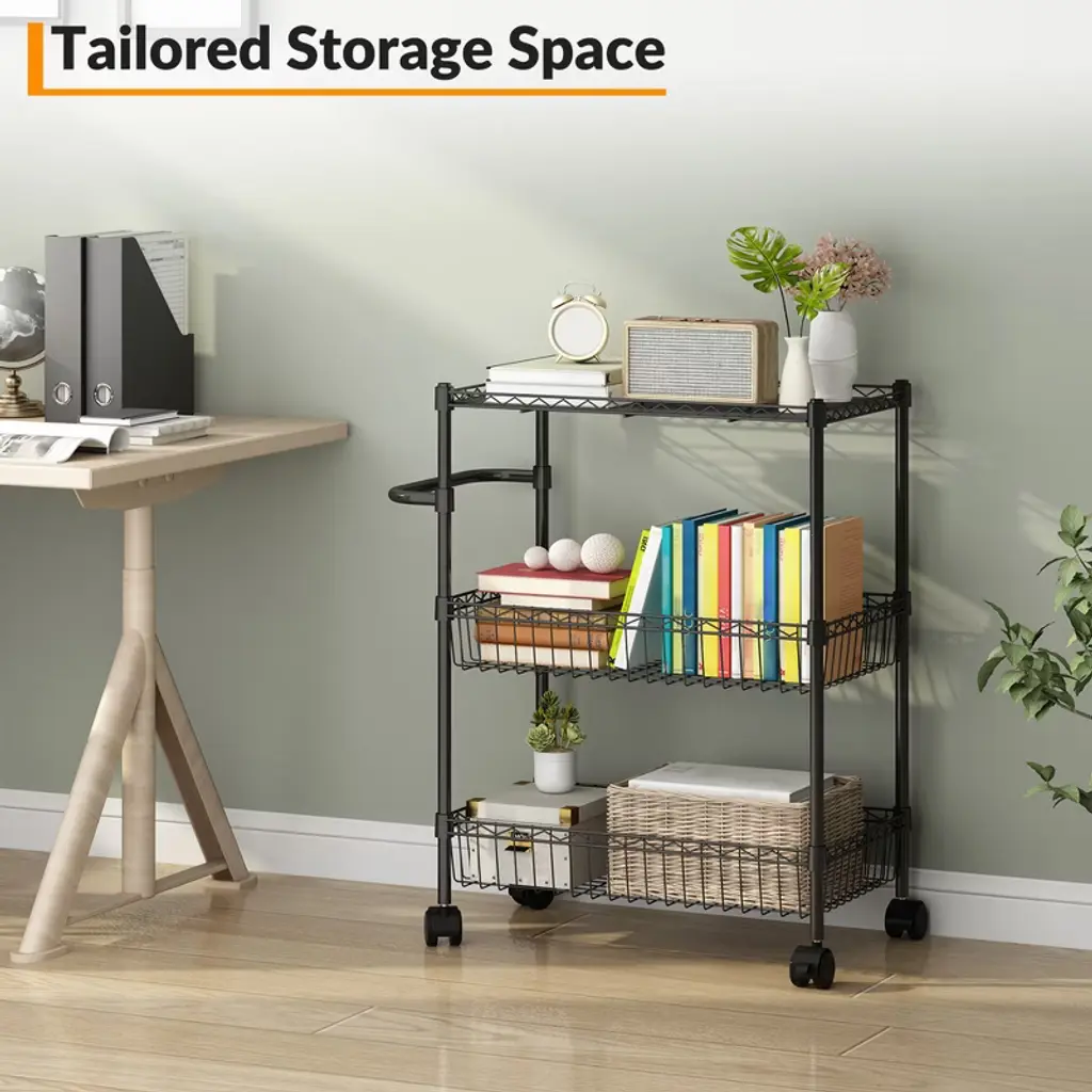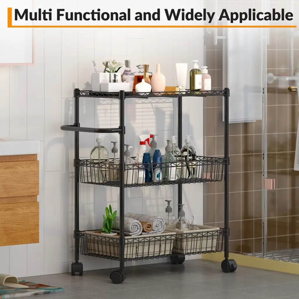 3 Tie Rolling Utility Kitchen Cart On Wheels,600lbs Wire Shelving Wire Basket Shelf Storage Cart, Utility Trolley With Handles For Office,kitchen
