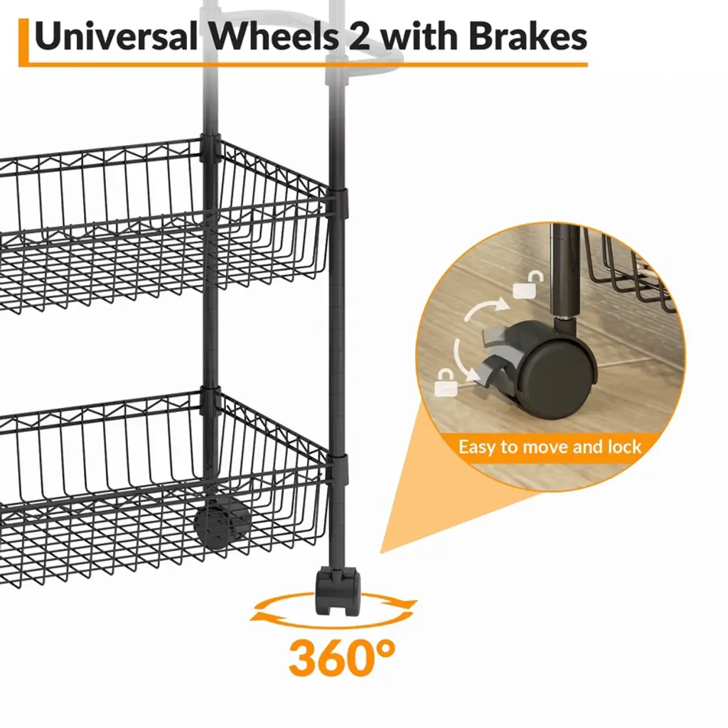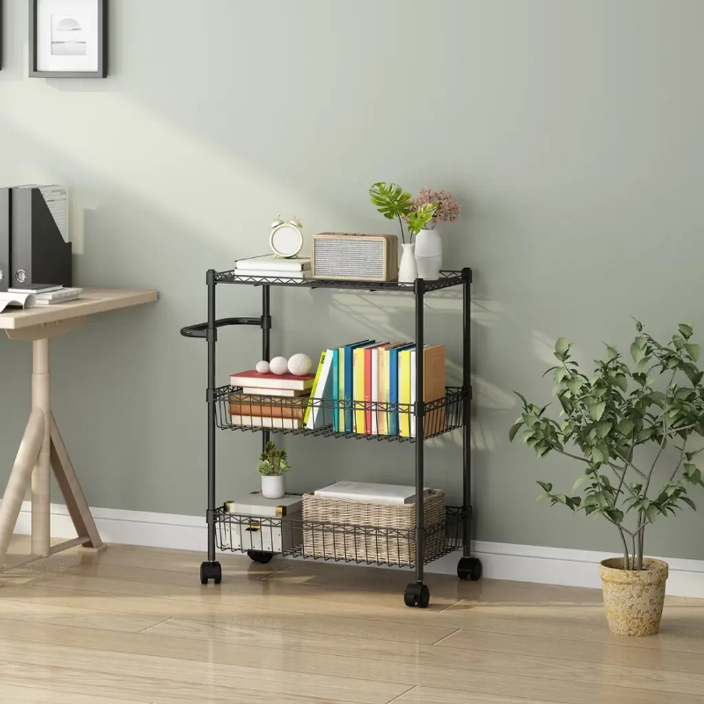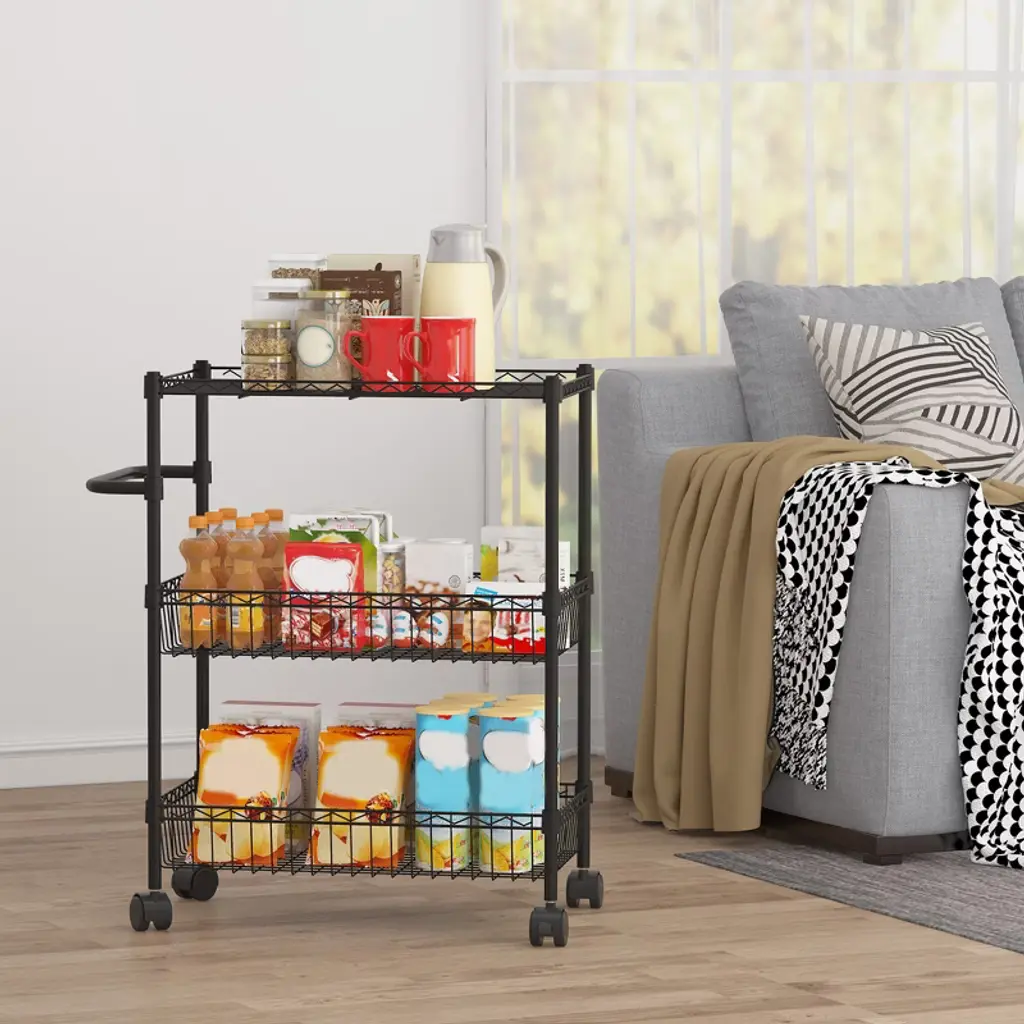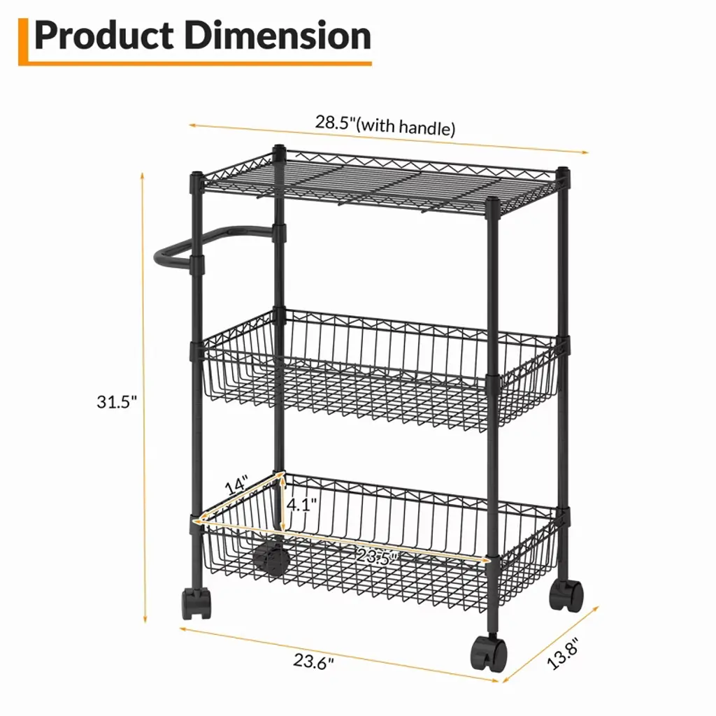 3 Tie Rolling Utility Kitchen Cart On Wheels,600lbs Wire Shelving Wire Basket Shelf Storage Cart, Utility Trolley With Handles For Office,kitchen