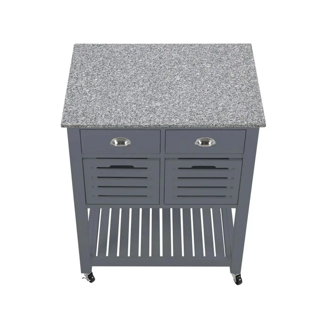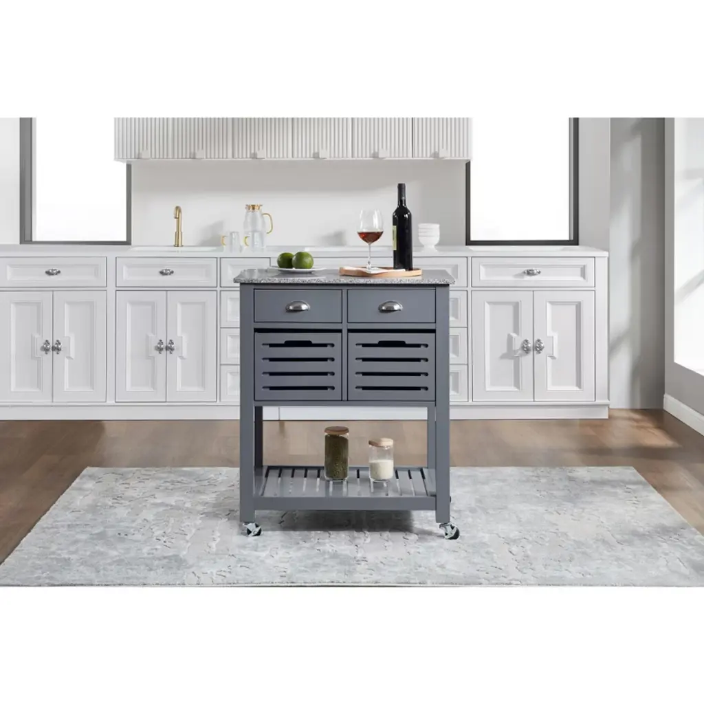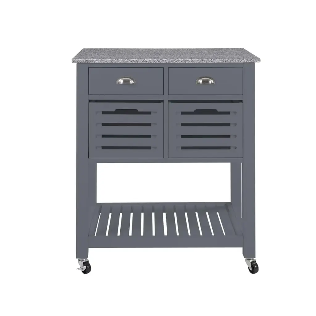30"mobile Rolling Kitchen Island Trolley Serving Cart With Marble Top,underneath Drawer & Slide-out Wire Storage Basket,grey