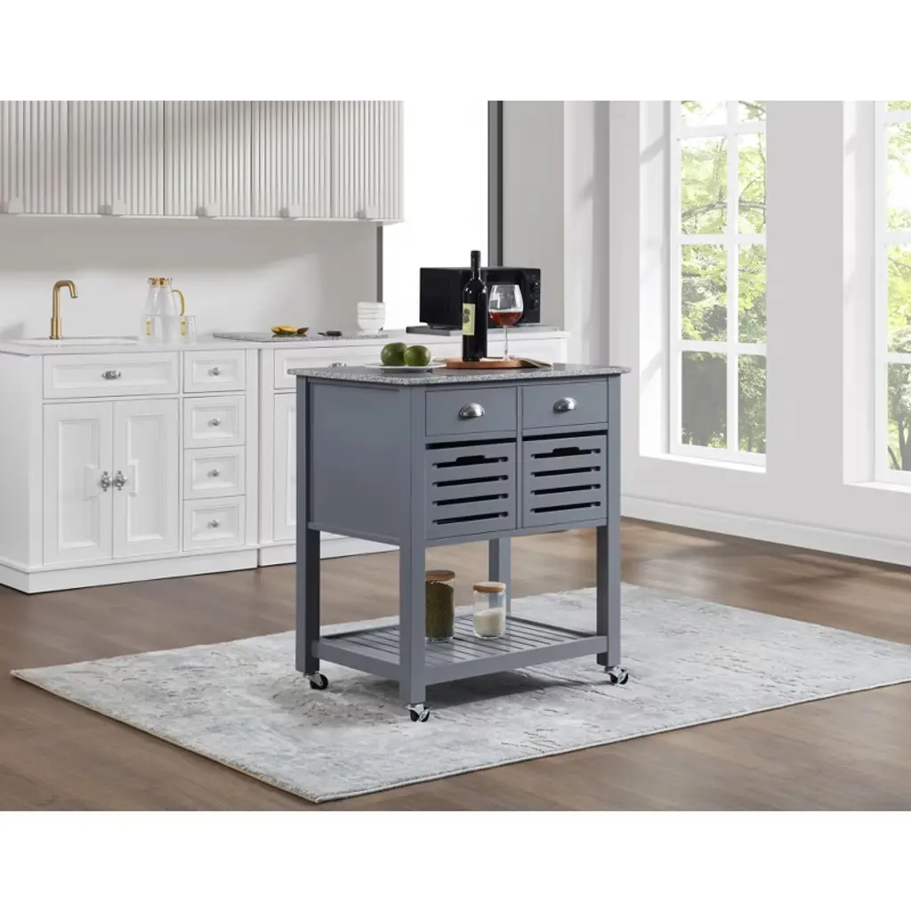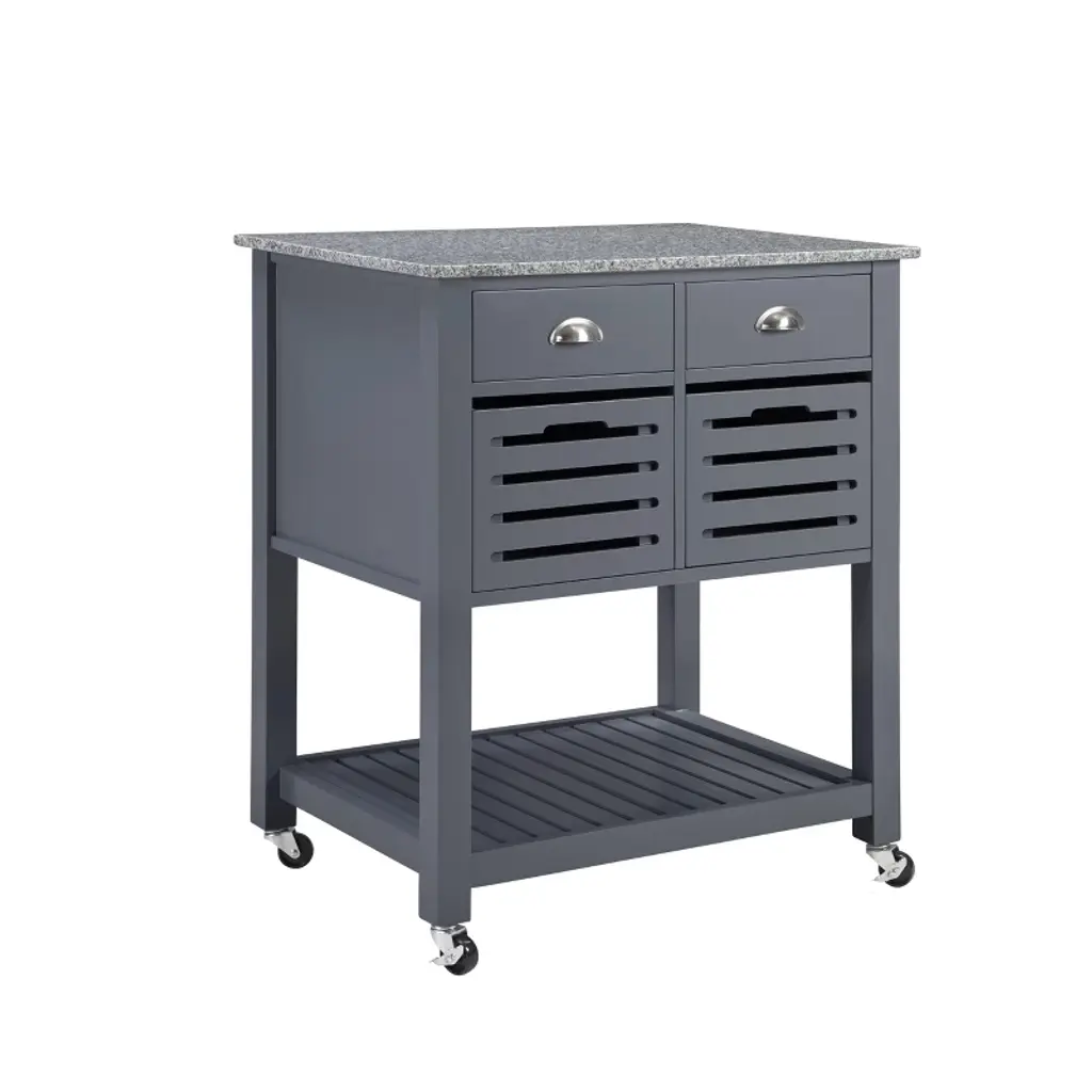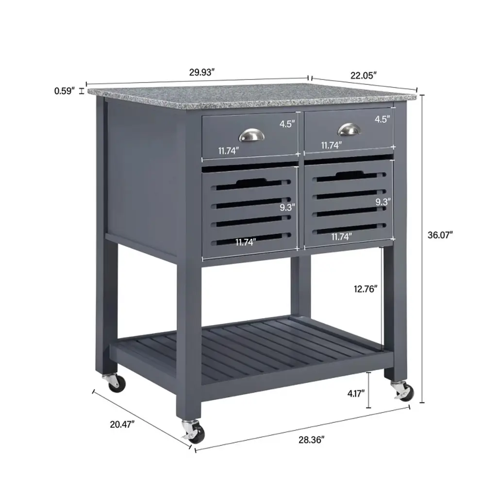 30"mobile Rolling Kitchen Island Trolley Serving Cart With Marble Top,underneath Drawer & Slide-out Wire Storage Basket,grey