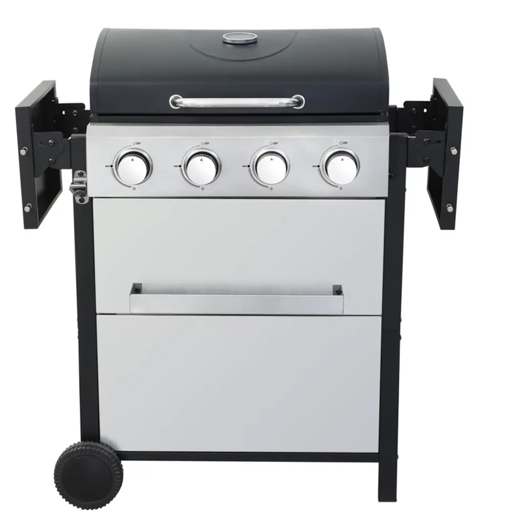 4-burner Propane Gas Bbq Grill With Wire Enamel Grids, Foldable Side Table, Stainless Steel Hanging Baskets, Bottle Opener, 34,200 Btu Outdoor Bbq