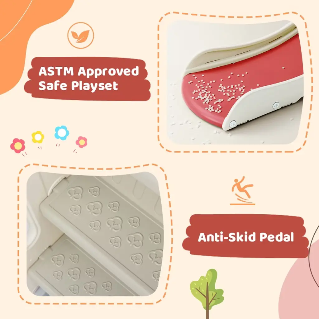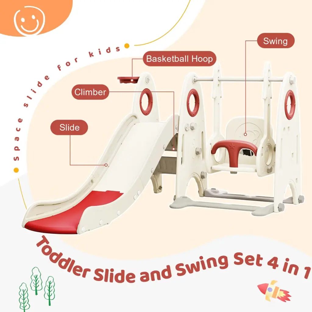4 In 1 Slide Climber Swing Set, Freestanding Toddler Slide Climber Playset With Basketball Hoop, Toddler Playground Indoor Outdoor, Red