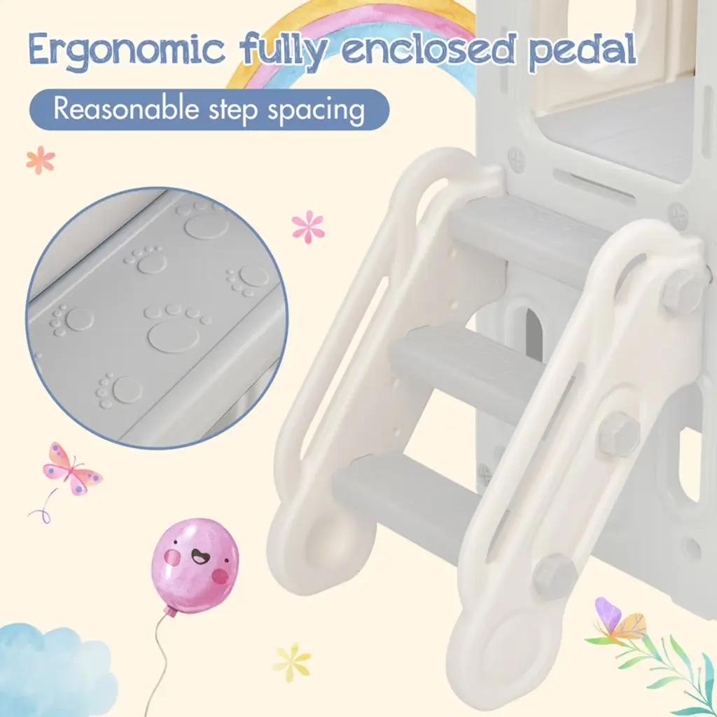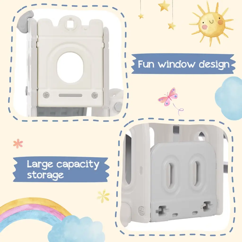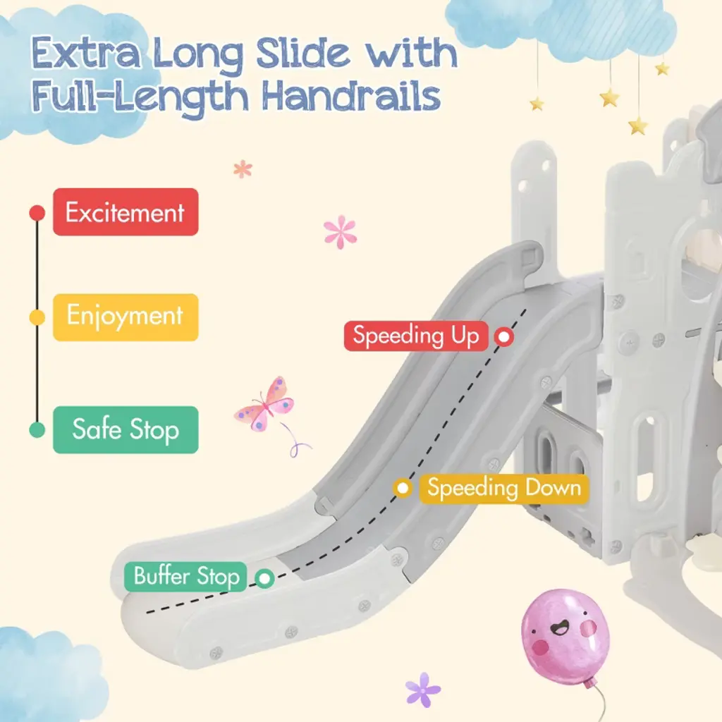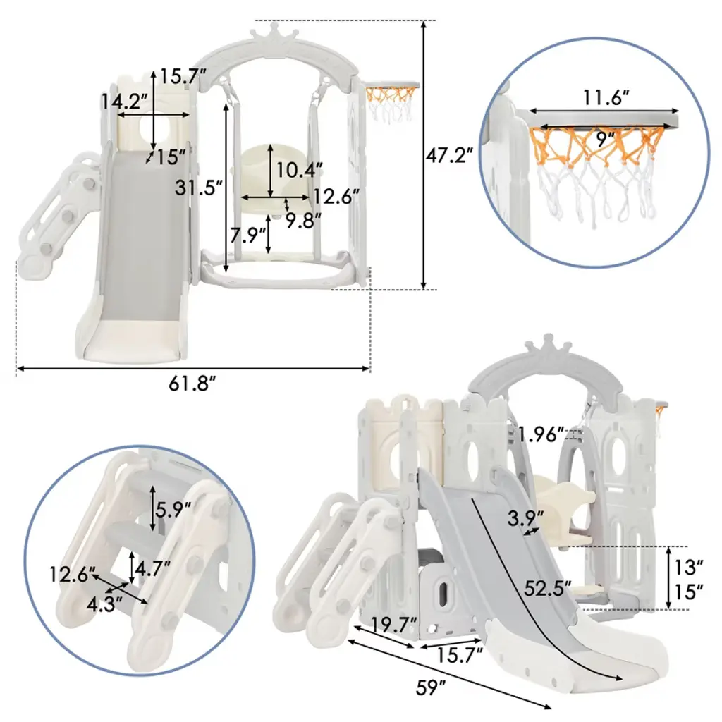 5 In 1 Toddler Slide And Swing Set, Outdoor Toddler Playset With Basketball Hoop, Baby Slide For Toddlers, Grey