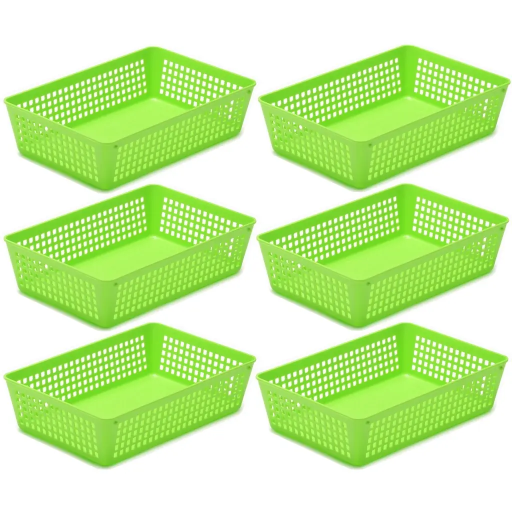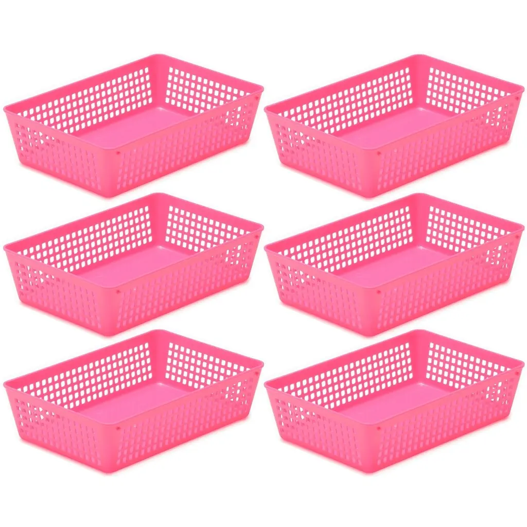 6-Pack Plastic Storage Baskets For Office Drawer, Classroom Desk - Clear