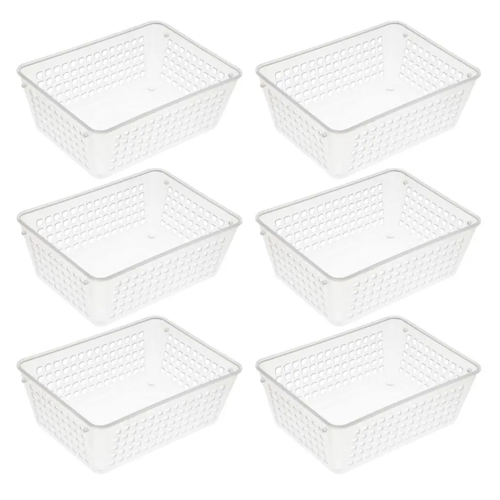 6-Pack Plastic Storage Baskets For Office Drawer, Classroom Desk - Pink