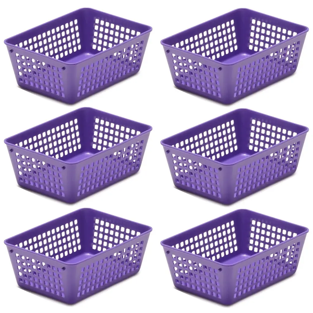 Clean up and organize common areas in your home or office with these plastic storage basketsKeep Supplies ContainedWhether you need to organize the kitchen pantry, bathroom shelves, closet, or kids room, these plastic baskets expedite the process to keep everything organized and easy to access. These baskets are solidly made to contain small items and heavy objects in drawers, desktops, shelves, and pantries without acting flimsy or wobbly. Featuring vented holes for airflow, they are made of BPA-free plastic material and withstands common tear and wear for long-term durability.Attractive Colors to Choose FromStorage baskets built with personality and style in mind. We offer these trays in six vivid colors to match your living settings:- Blue- Green- Gray- Pink- Purple- White
